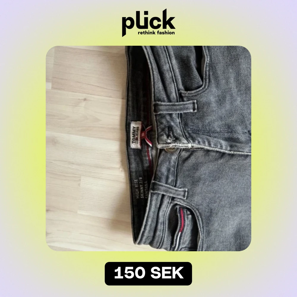 Grå/svarta Jeans i high waist från Tommy Hilfiger med slitna slut på byxan. Storleken är 26/30