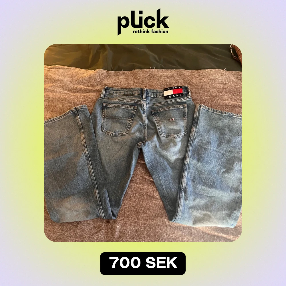 Snygga blå jeans från Tommy Hilfiger som inte finns att köpa längre. I modellen Sofie low rise flare. Använda väldigt sparsamt. Nypris 1299kr. Storlek 25/30 men passat även mig som är 170cm.