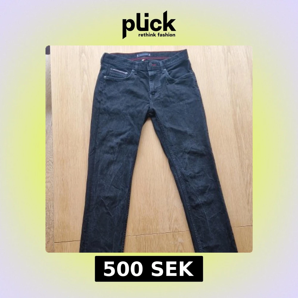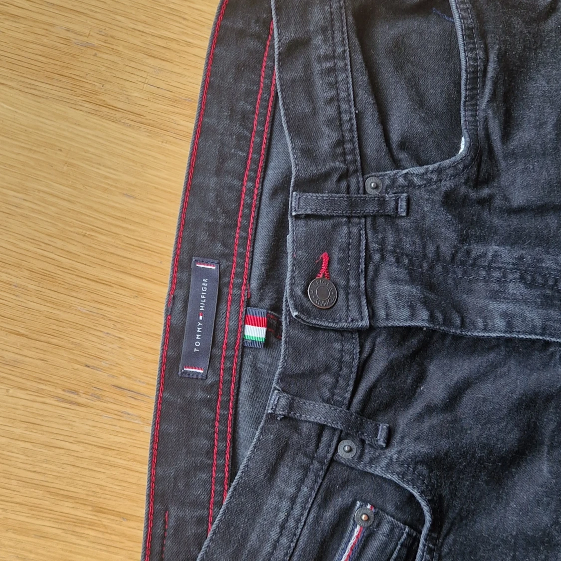 Svarta jeans från Tommy Hilfiger med stolek 30/32. Det är straight model men jag skulle säga att det passar mera slim. De är i bra skick och har inga defekter. Skickar gärna flera biler eller mått👌