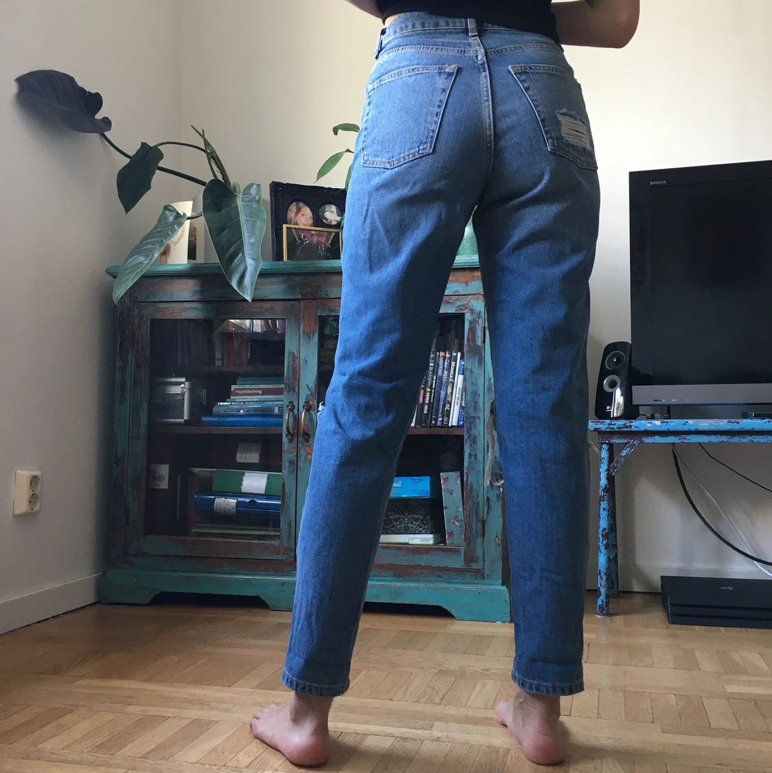 Snygga Mom jeans från topshop med rips på bla knäna. Helt oanvända. Strl 26/32 och något kortare i modellen. Frakt tillkommer ✨
