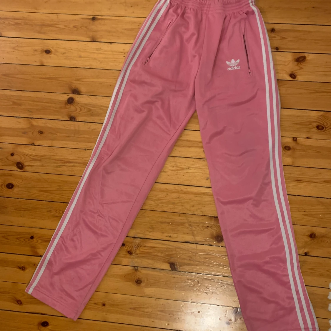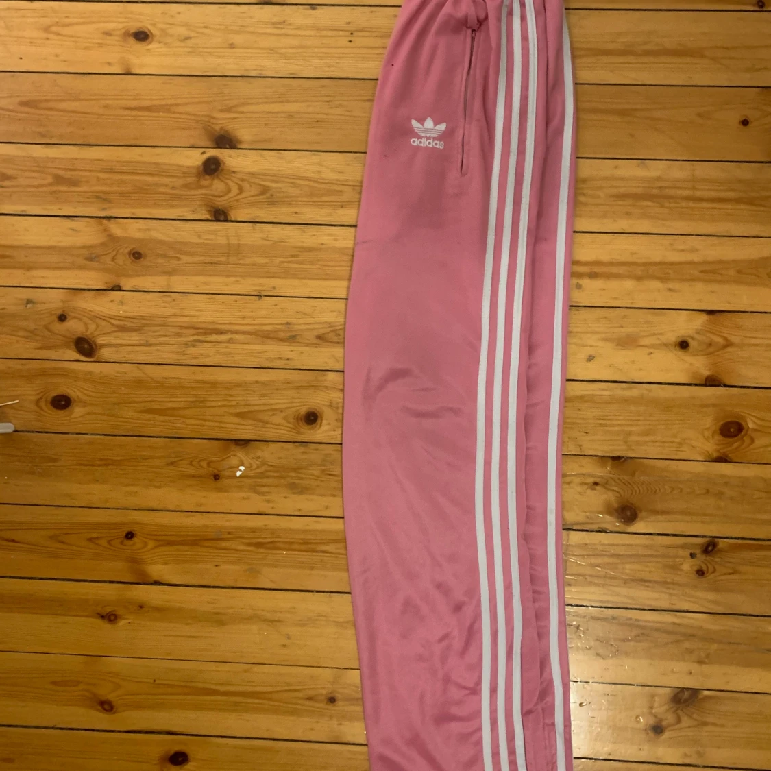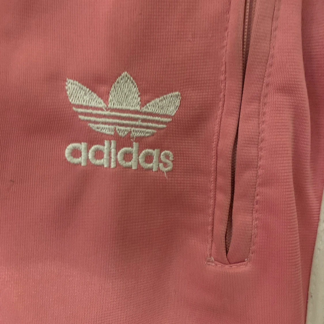 Rosa adidas trackpants, skulle säga att de funkar på alla mellan XS-M. Höga i midjan och långa i benen!