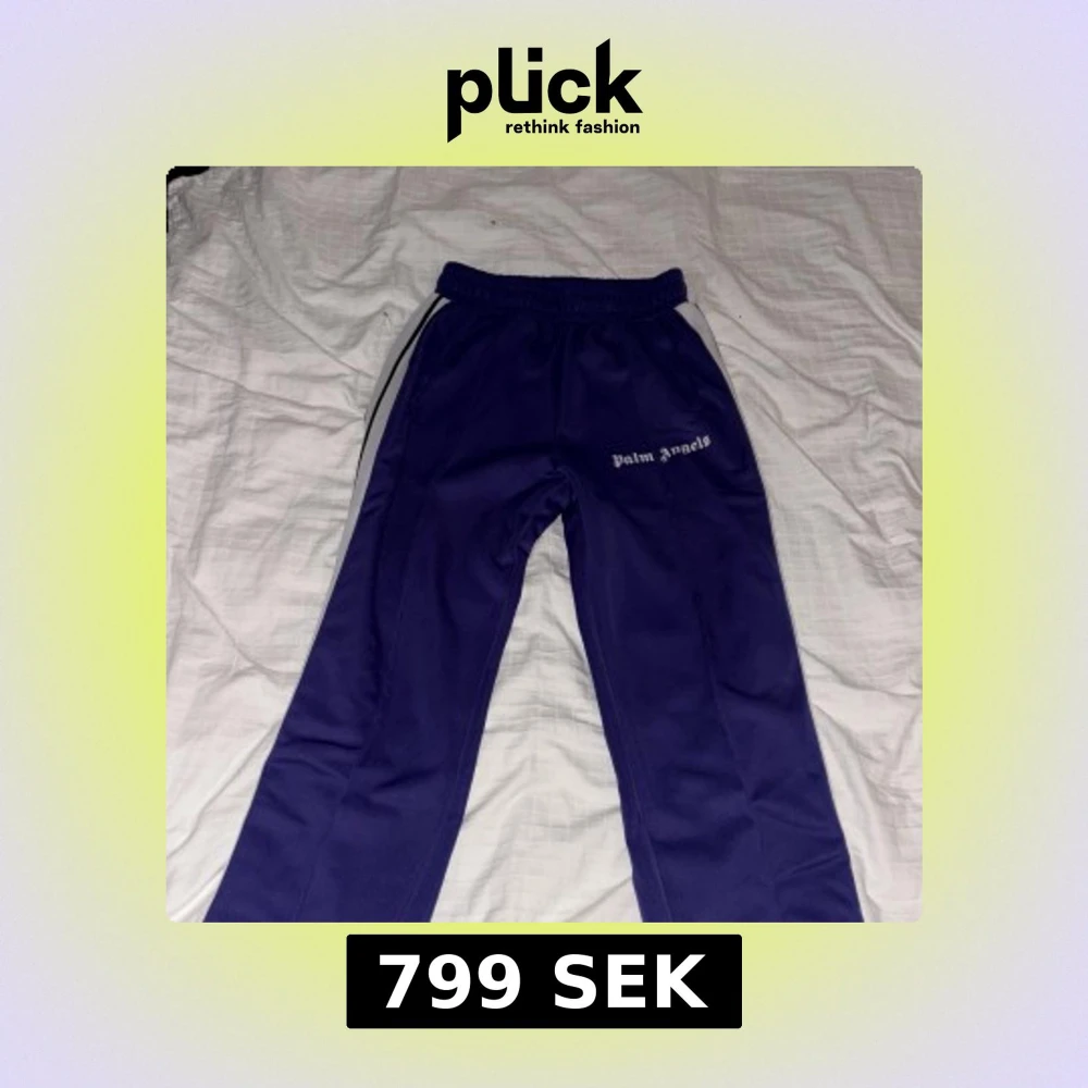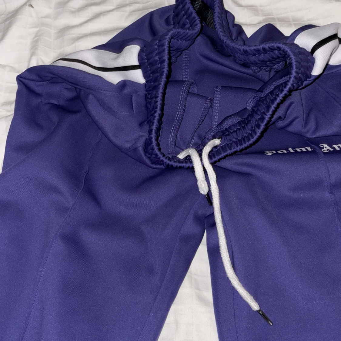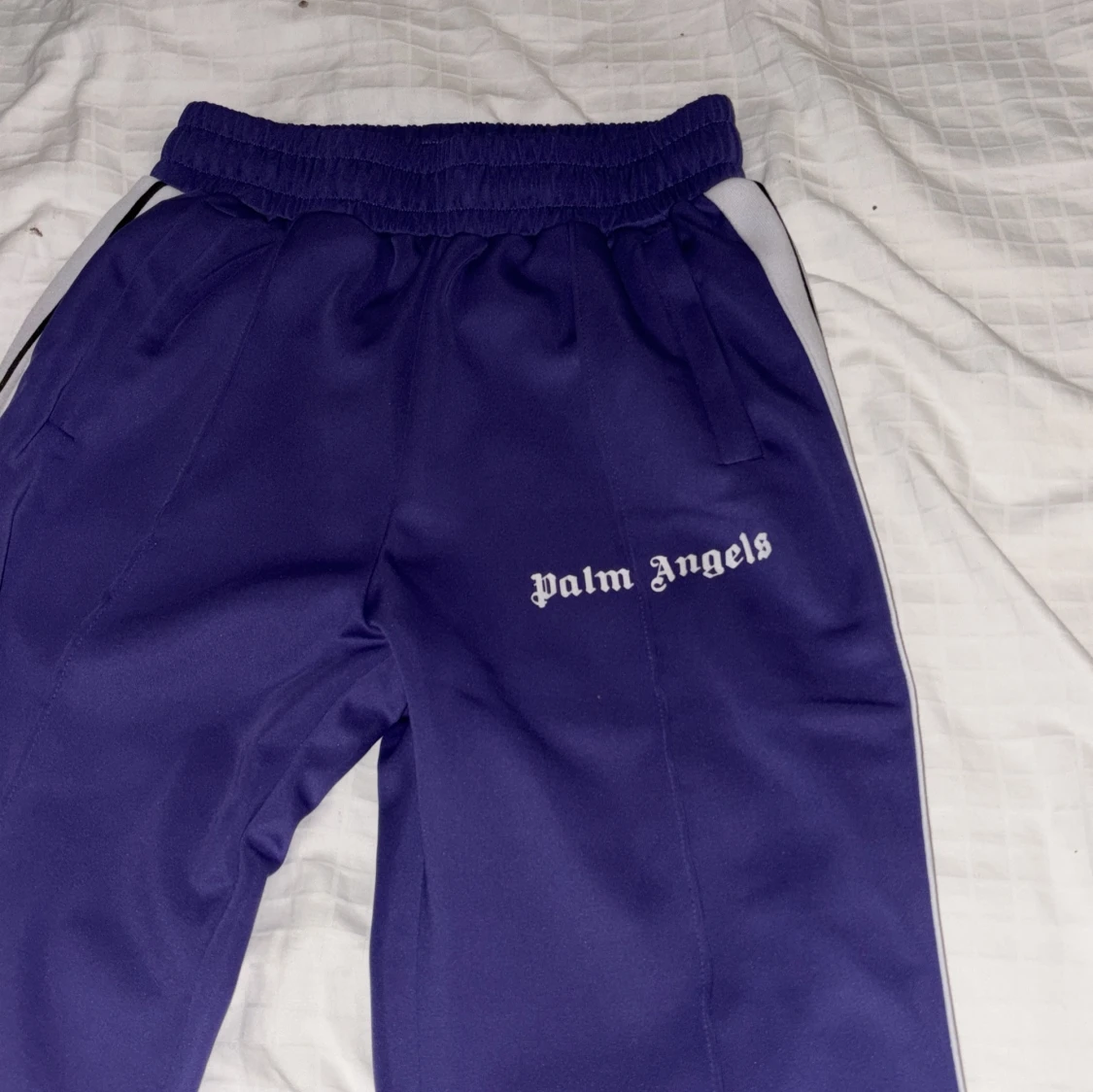 Lila Palm Angels trackpants. Passar mellan 160-170. Enda felet är ett pyttelitet hål nere på vänster ben, se sista bilden, tveka ej med frågor.