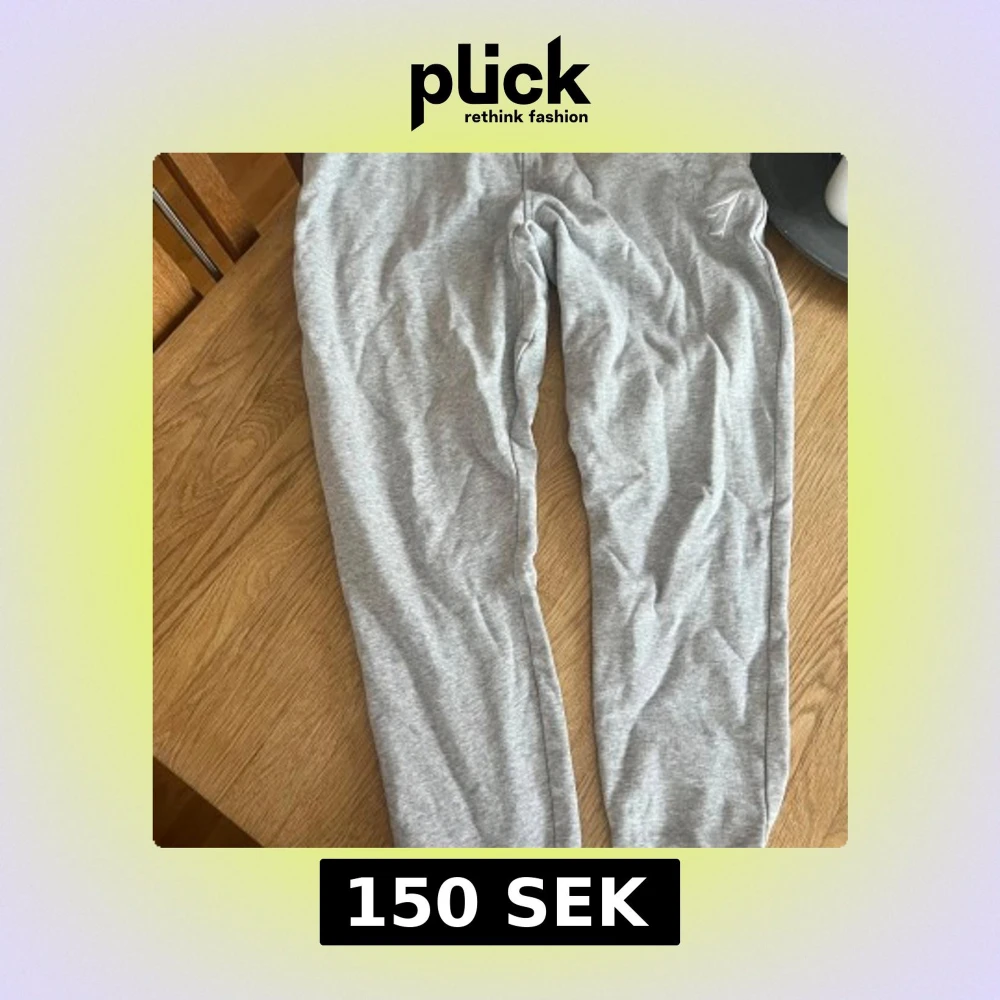 Säljer ett par grå mjukisbyxor från Gymshark med elastisk midja och diskret logga på benet. Byxorna har en slim passform och är gjorda i mjukt bomullsmaterial, perfekta för chill eller träning. Snyggt minimalistisk stil och riktigt sköna att ha på sig.