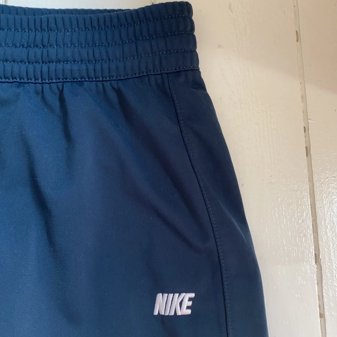 Mjukis-/träningsbyxor från Nike. Materialet är syntetiskt så det funkar bra att träna i. Passformen är som XS och de sitter ner till ankeln på mig som är 163 cm. Det finns justerbara band i midjan! Aldrig använda! Säljer för de nt kommer till användning :)