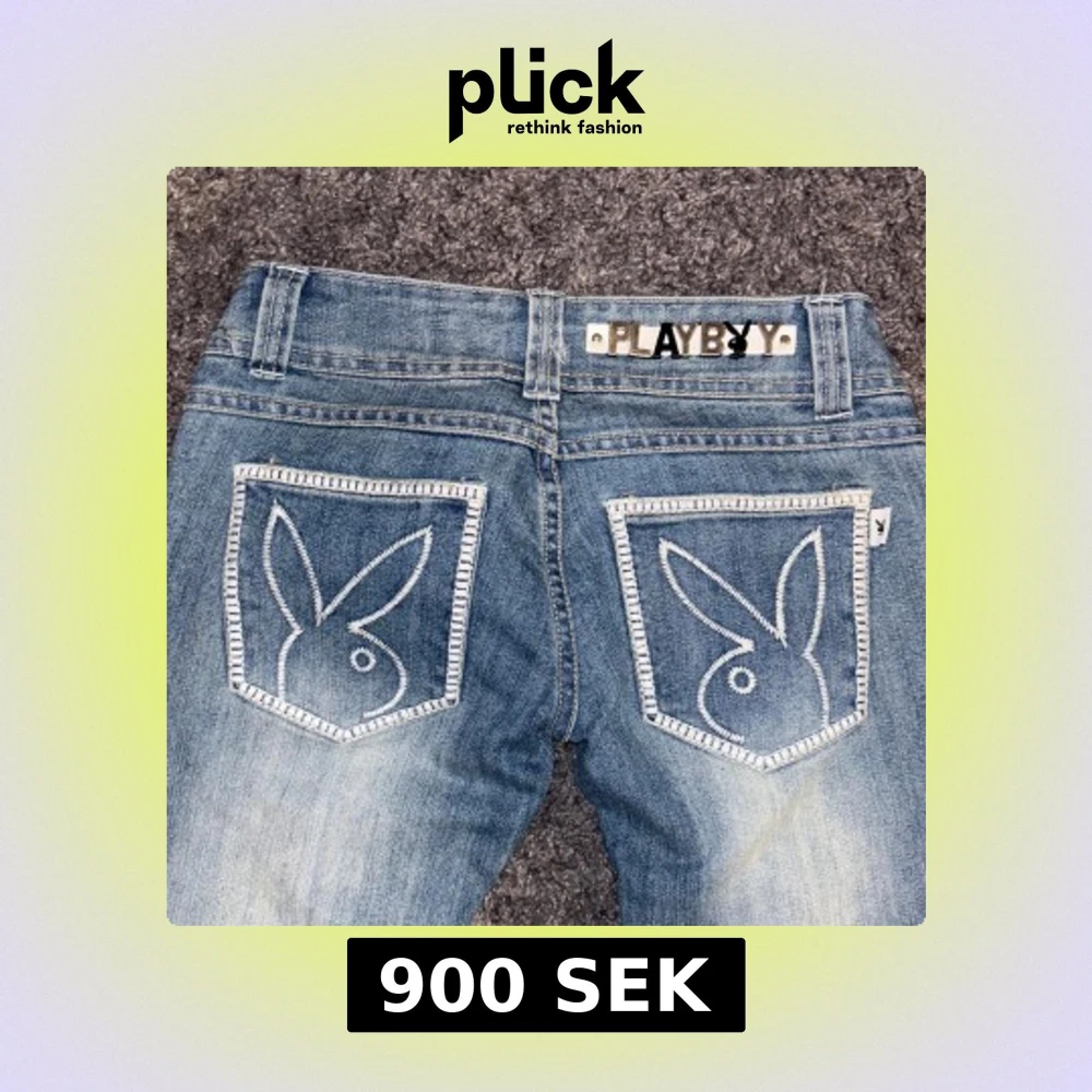 Snygga blå jeans från Playboy med ikoniska kaninloggan broderad på bakfickorna. Jeansen har slitna detaljer och en låg midja med knappar. Byxorna är utsydda till bootcut däravven extra söm. Innerbenslängd 83 cm och tvärs över midjan 39 cm ❤️ PRISET ÄR DISKUTERBART!!! ❤️