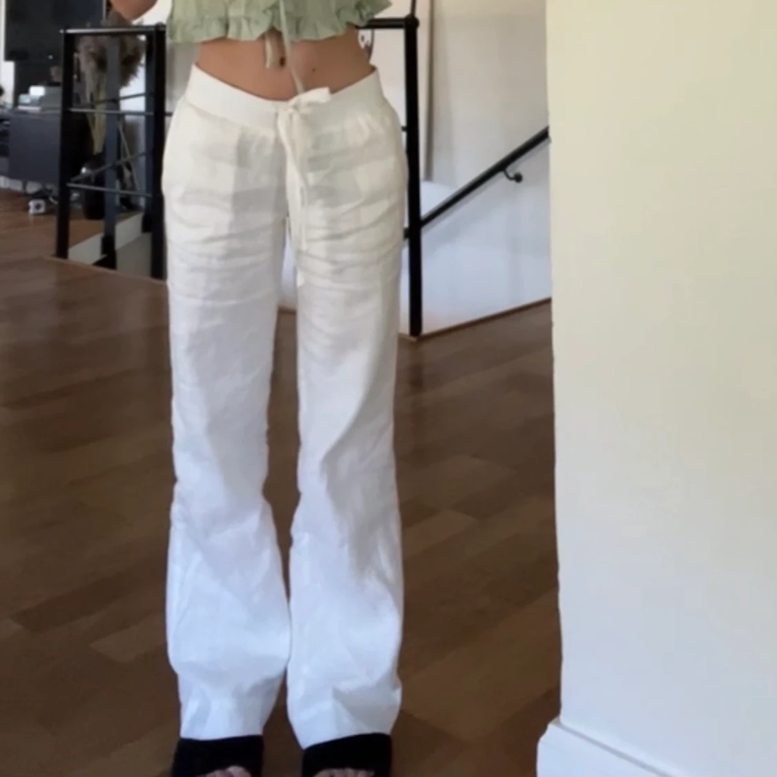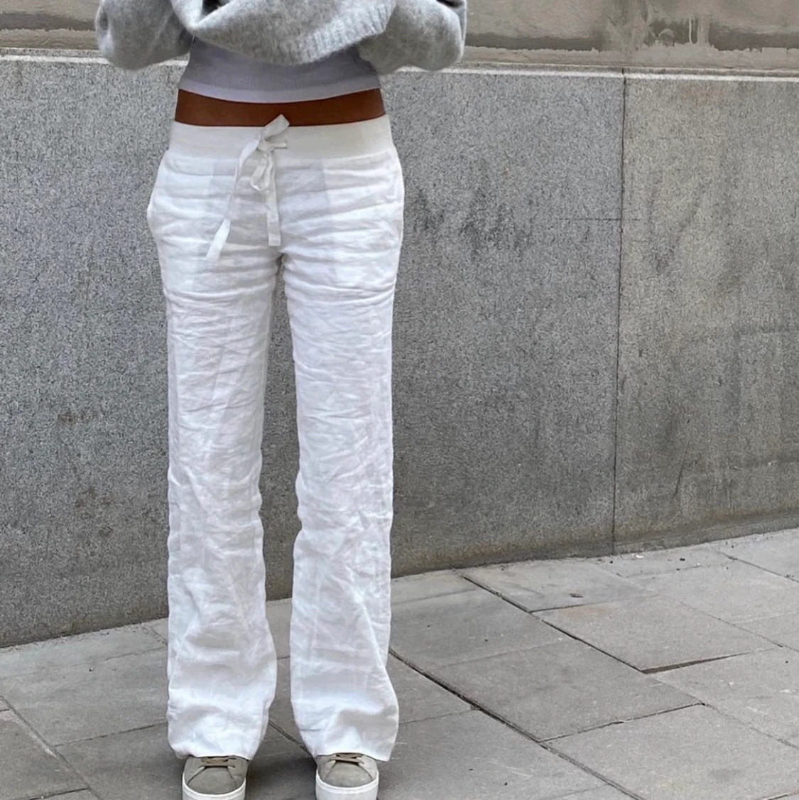 (Första bilden lånad) Säljer mina linnebyxor från alobha då ja köpte två storlekar å valde behålla den andra istället. Byxan jag säljer är i storlek S och är helt oanvänd (har på mig xs på bilden). Om många är intresserade blir det budgivning 💛