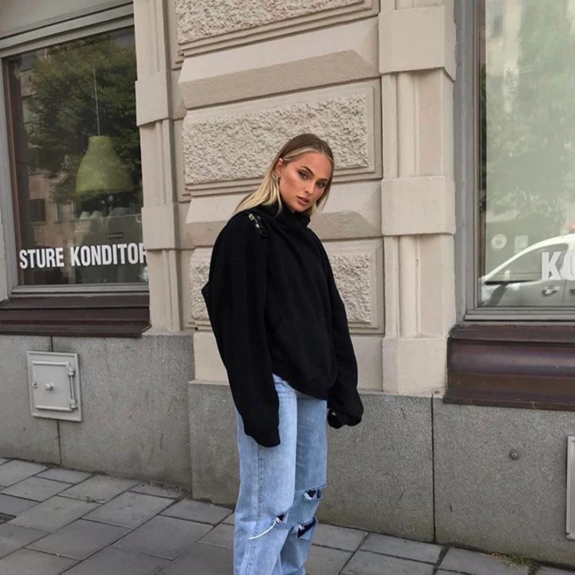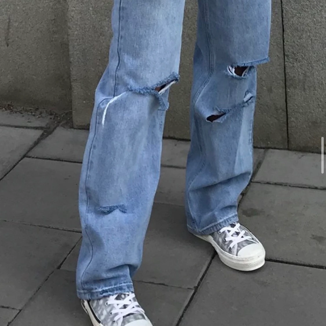 Ett par jeans från boohoo som är jätte fina men tyvärr inte sitter så bra på mig! Jag har klippt av dom ungefär 7cm och original längden är för folk som är 170+ så nu passar dom för 155-165 skulle jag säga, det bror på ens ben längd! Frakten betalar köparen hör av er för fler bilder💕 stora i storleken men passar 34-36