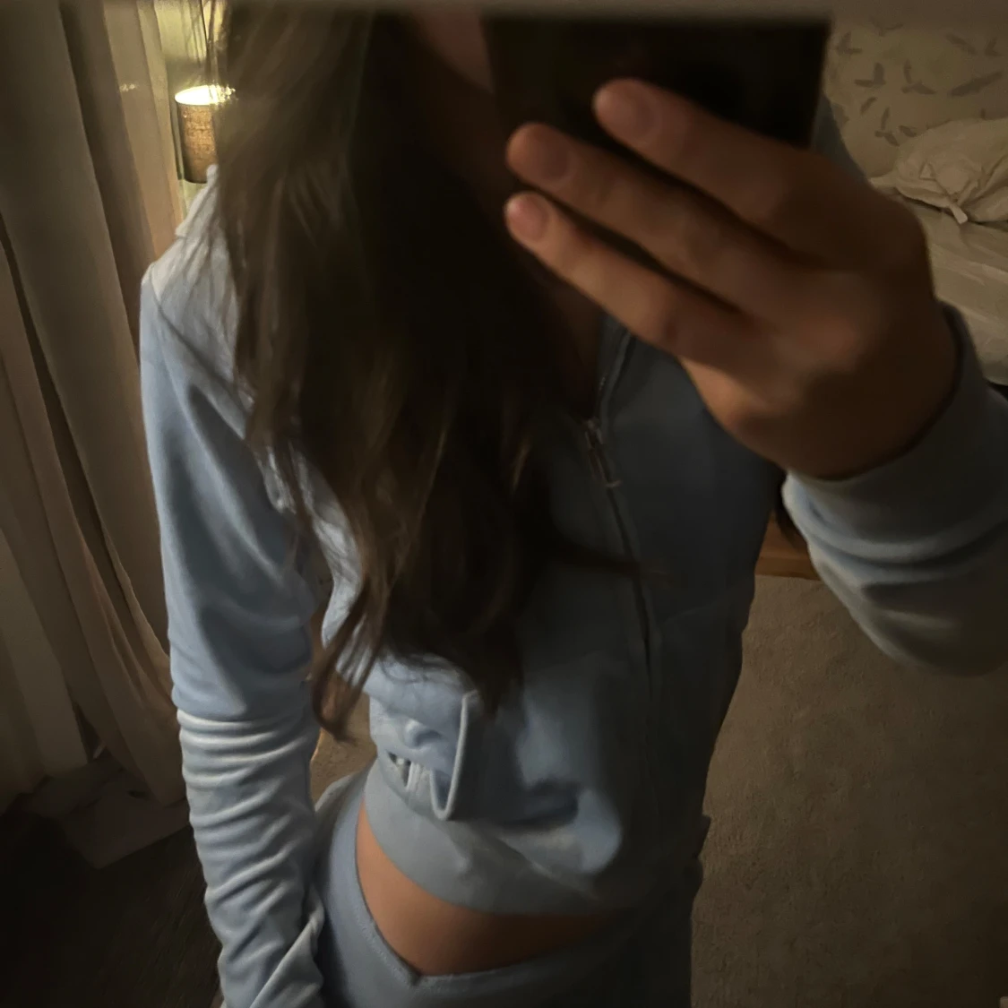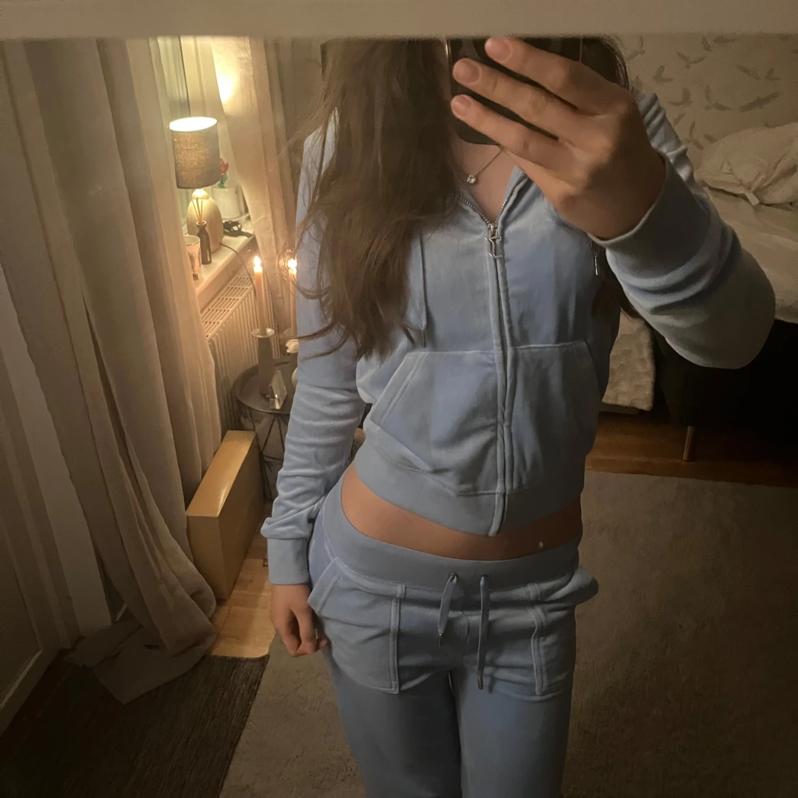 Säljer detta jätte snygga juicy sett eftersom de inte kommer till användning, det är knappt använt. Fler bilder kan skickas💕buda! Byxorna är i S och tröjan i Xs