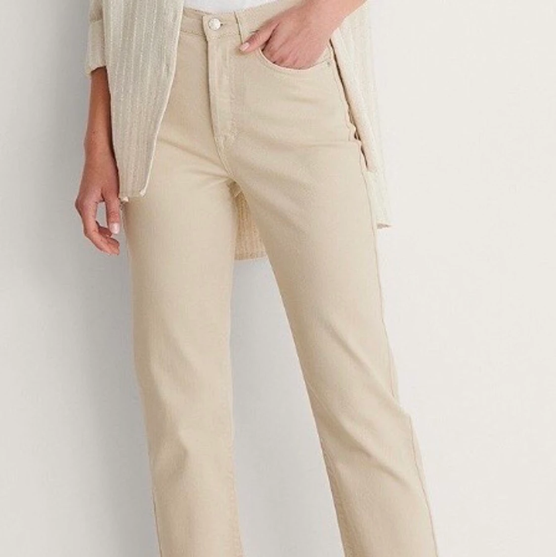 Säljer dessa beiga jeansen från NA-KD. Nyskick! Köptes för 399. Säljs för 200 INKL spårbar frakt. Storlek 36. Slutsåld på hemsidan! Säljs då de inte kommer till användning💗