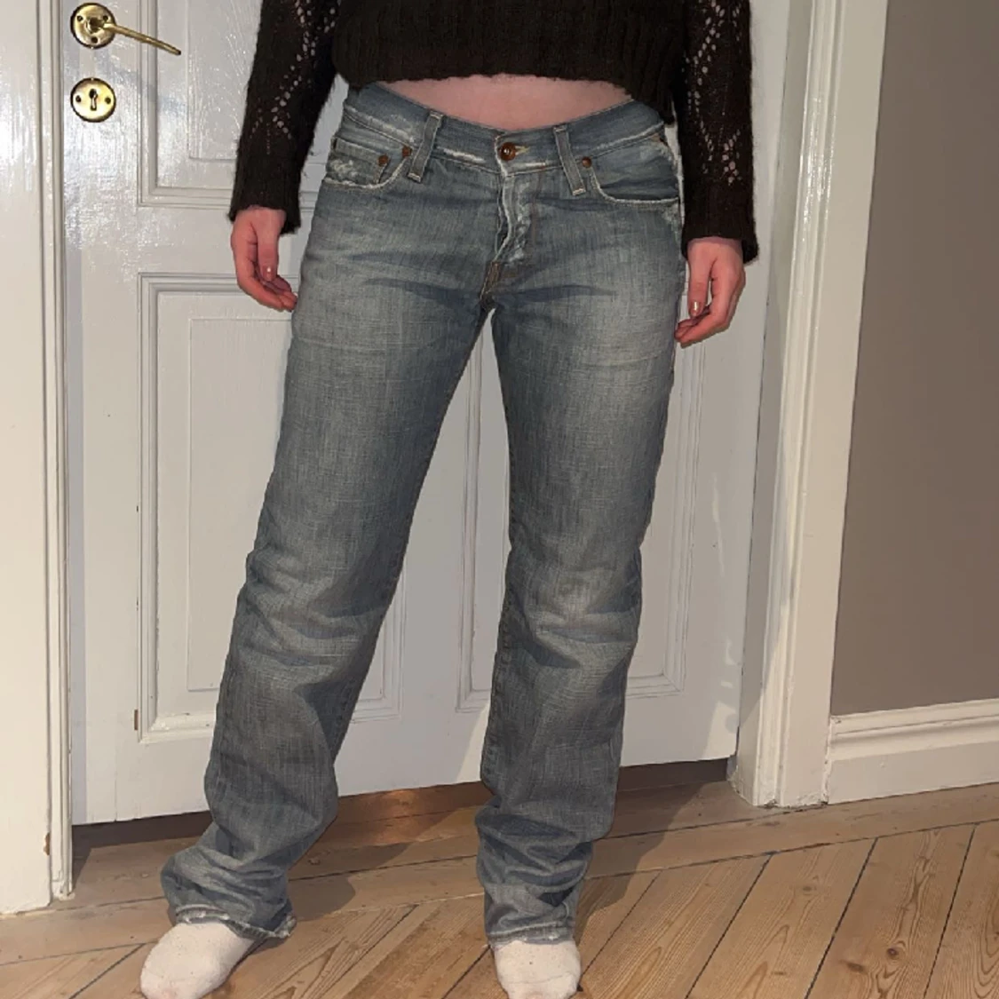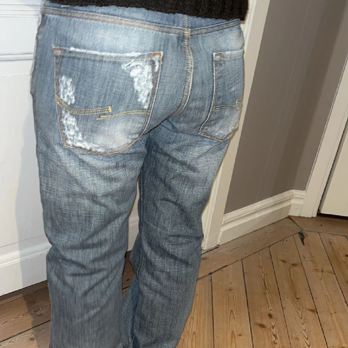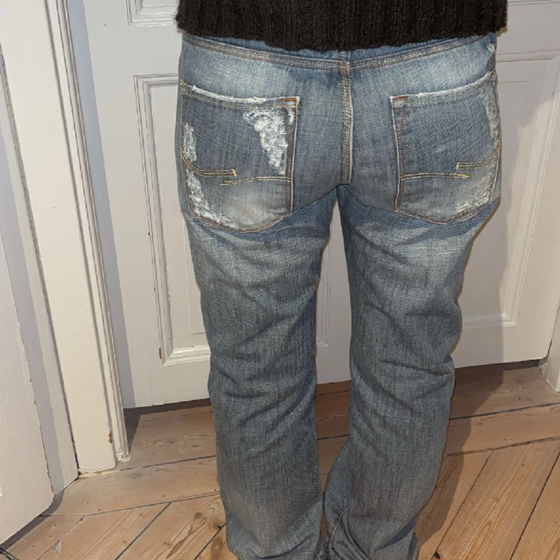 Såå coola och unika lågmidjade straight jeans i unik tvätt med slitningar🪩🥰Perfekt passform! Storlek M ungefär. Fint skick. Skriv vid funderingar och kolla in mina andra annonser💘