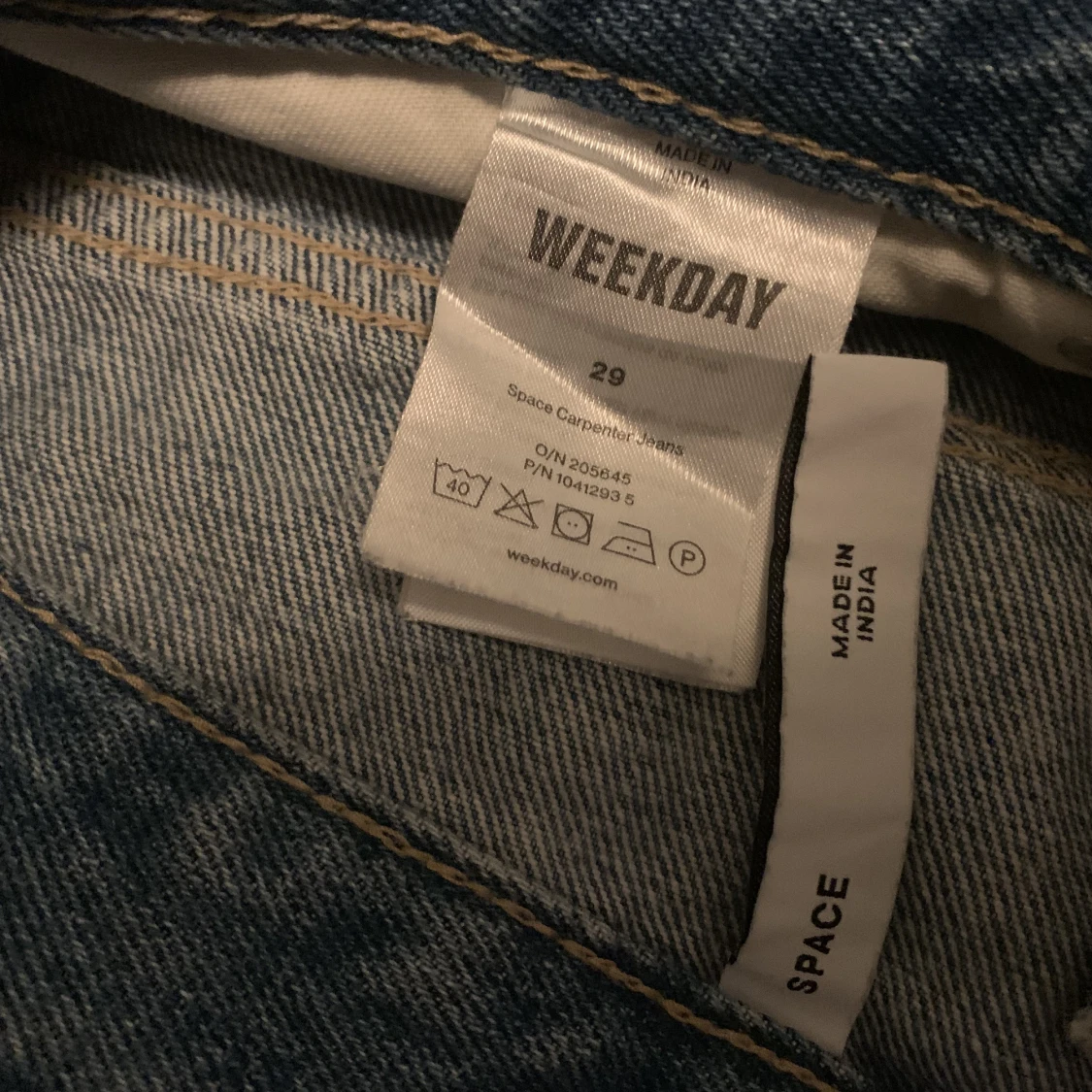 Weekday Space Carpenter Jeans i storlek 29. Sitter baggy på mig som är 170 cm lång. Använda fåtal gånger och är i fint skick. Tveka inte att fråga:)