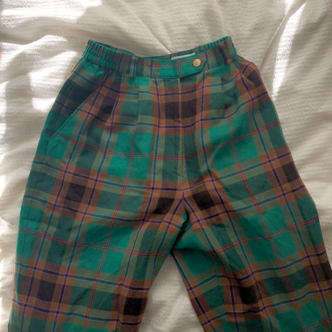 Snygga byxor som jag tror att någon annan kan få mer användning för☺️ passar XS. Är köpta på second hand i CPH🖤 De är mer mörkgröna i verkligheten än på bilderna. Betalningen sker via swish.