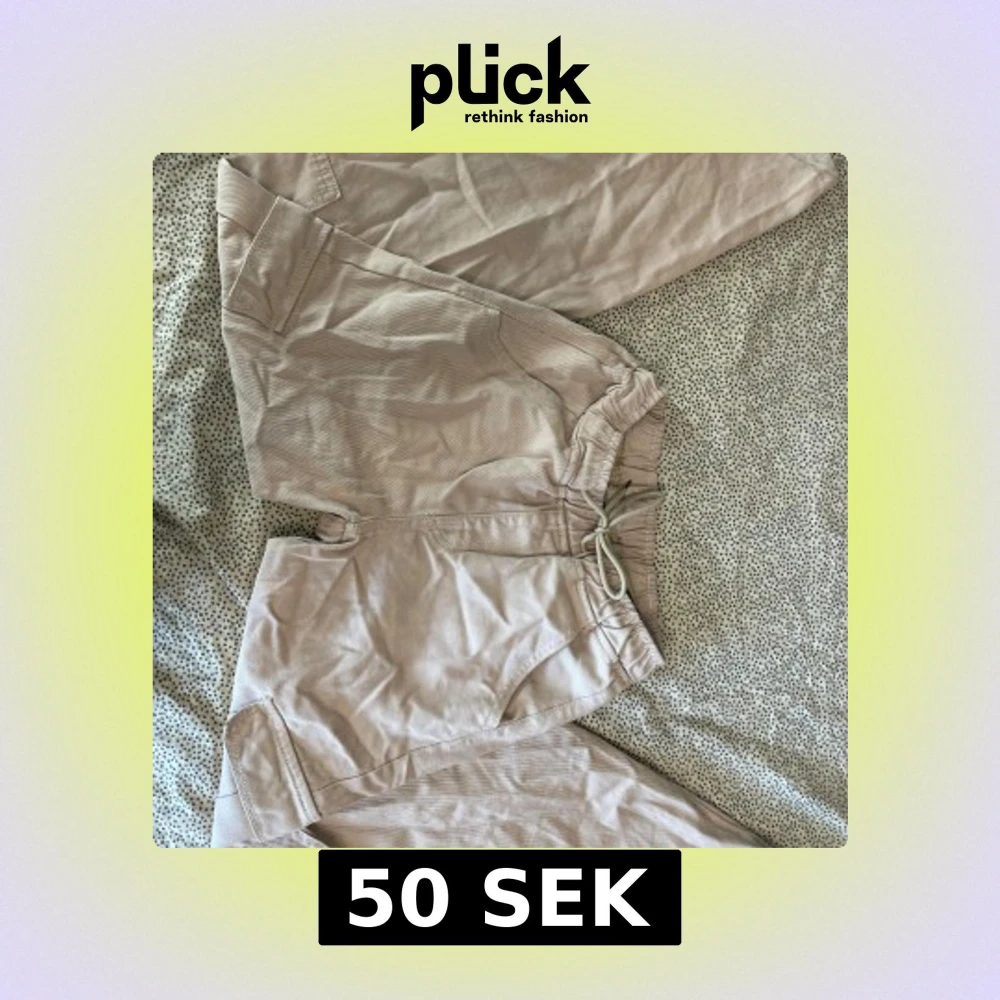 Snygga beiga cargopants från SHEIN i storlek XS. Byxorna har flera fickor, elastisk midja med snörning. Perfekta för en chill och avslappnad stil.