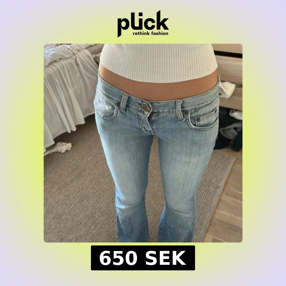 Säljer mina absoluta favorit jeans från Calvin Klein🤍bootcut med låg midja i ljusblå färg som passar till allt och assnygga detaljer på fickorna. Jättebra skick, lite slitna nertill på ena benet, syns på bild 3. Skriv vid funderingar