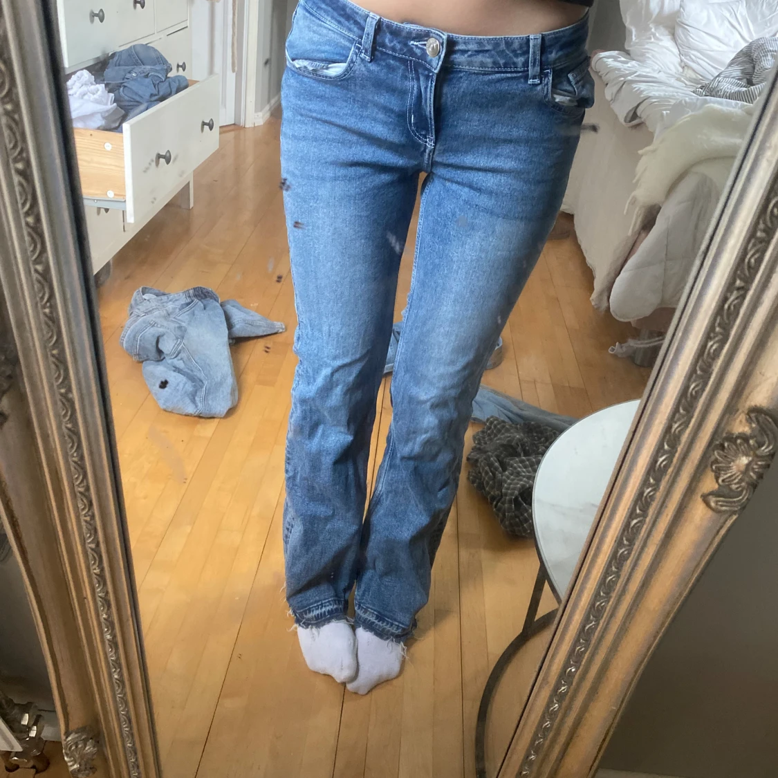 Säljer mina lågmidjade jeans från hm, de är skitsnygga och använda ett fåtal gånger. Säljer då dem inte kommer till användning så mycket längre. Skriv för fler bilder eller frågor!