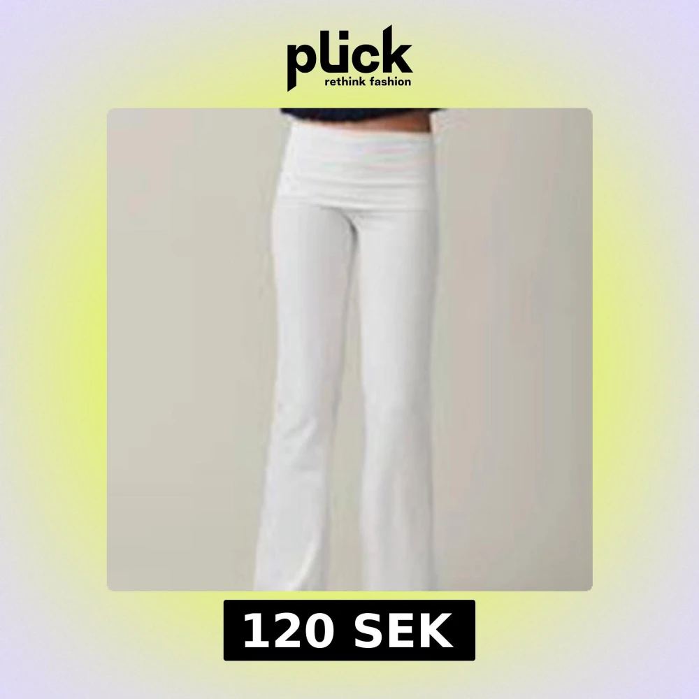 Snygga vita youga pants! De är stretchiga och sitter tajt upptill men släpper ut vid anklarna. Perfekta för dig som gillar en clean och fräsch look. Materialet känns mjukt och följsamt. Skriv för fler bilder! Tror att det inte längre är tillgängliga på hemsidan