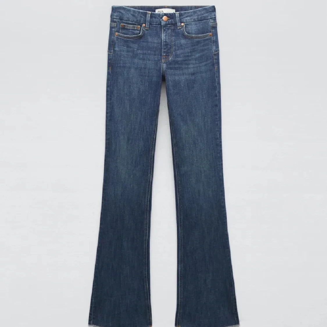 Snygga blå jeans med bootcut-silhuett och klassisk femficksdesign. Jeansen har låg midja och är tillverkade i ett mjukt denimtyg som ger en skön passform. Perfekta för dig som gillar en retrovibe och vill ha ett par jeans som sticker ut.
