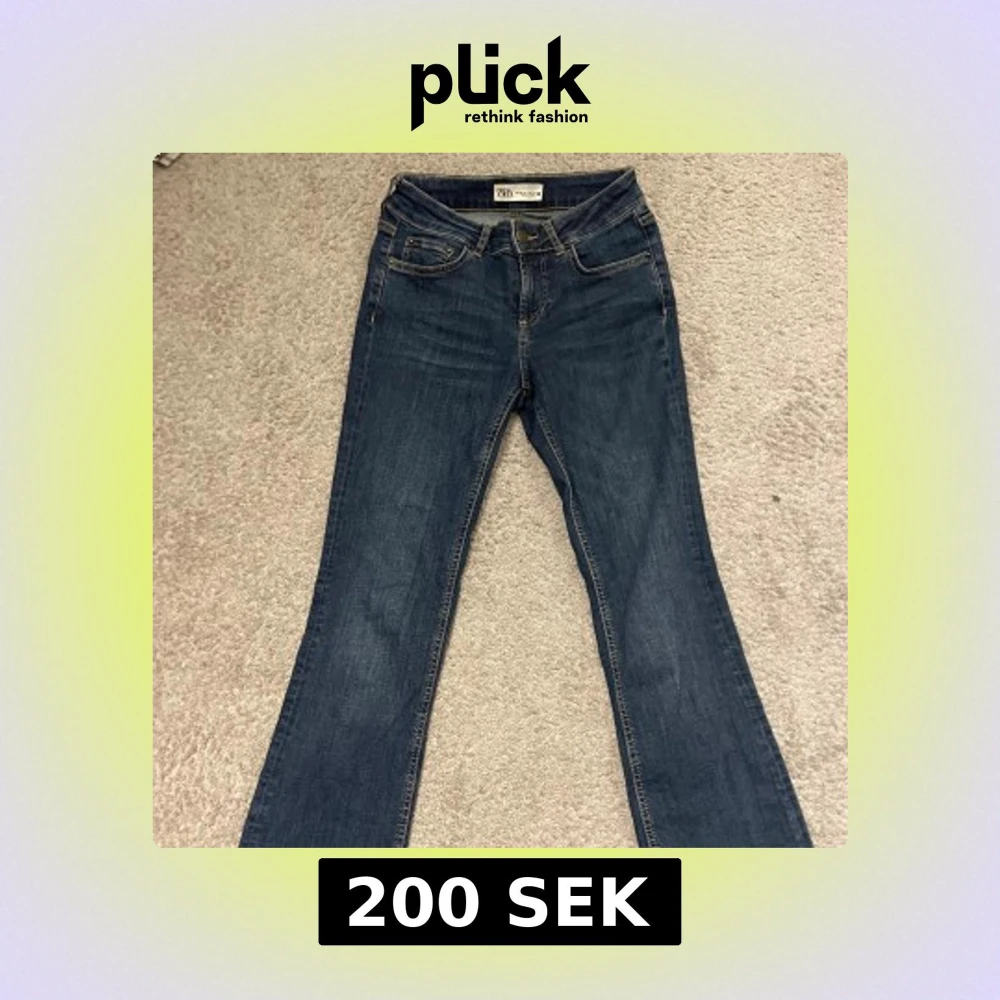 Säljer dessa jättefina bootcut jeans för att de är för små. Har sprättat upp de längst ner. Strl 34. Innerbenslängden: ca 78 cm. Midja: ca 37
