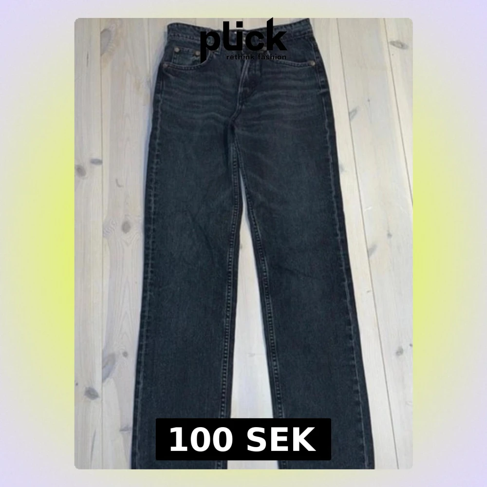 Mörkgrå jeans med medelhög midja från Zara med raka ben. Jeansen har en mörk tvätt och är använda ett fåtal gånger.