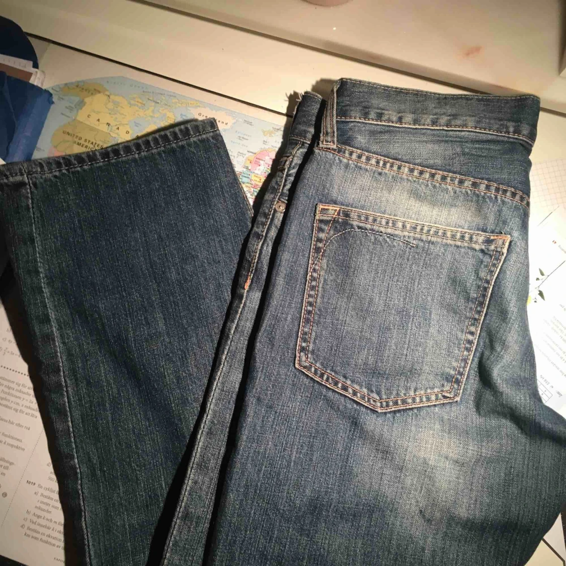 Snygga och trendiga jeans med bra längd. Sitter lite baggy och slutar under naveln. Tyvärr lite stora i midjan för mig😵 Köpta secondhand. Möts i Stockholm eller fraktar❣️