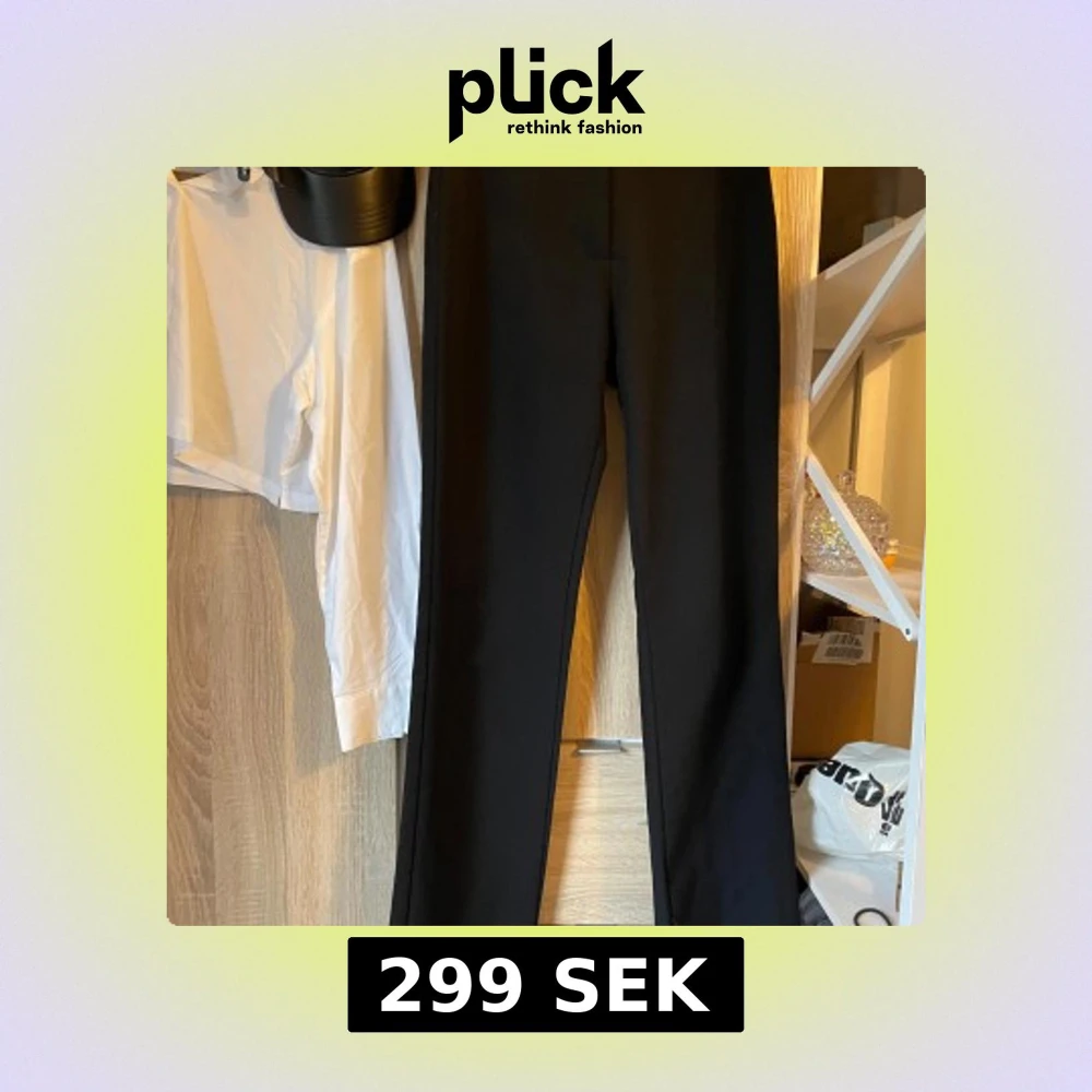 Dösnygga lågmidjade kostymbyxor från united colors of benetton, men dem är nu mera försmå 🥲 Ingen storlek i men jag har kunnat använda dem som en loose variant när jag var i stl 32-34 men perfekt i stl 36!