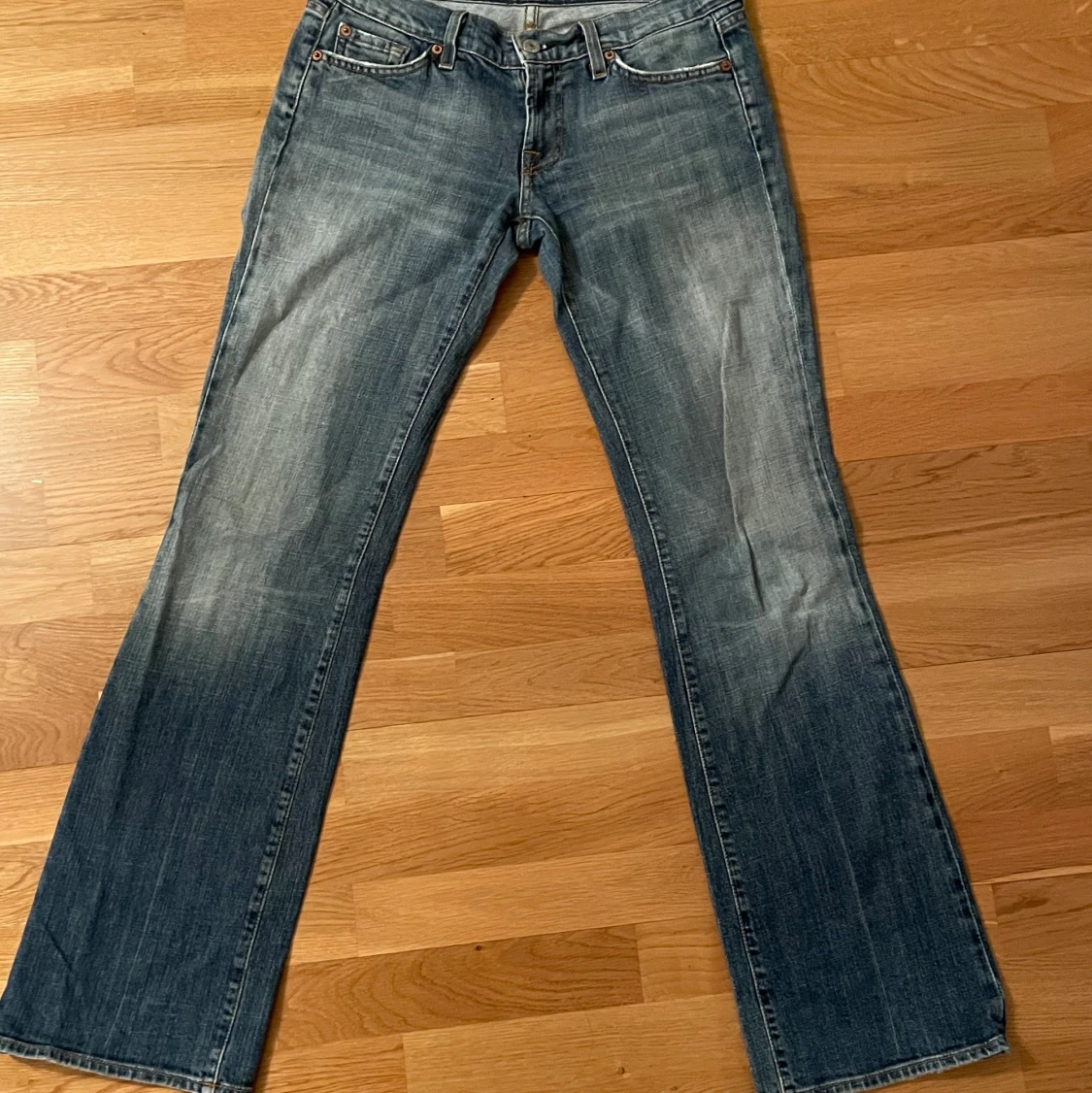 Världens snyggaste jeans som va för små för mig:// färgen syns bäst på sista bilden och de verkar nästan oanvända😊 W28, skulle säga att de är som en liten 36a, går ner till hälarna om man är 175cm eller kortare!