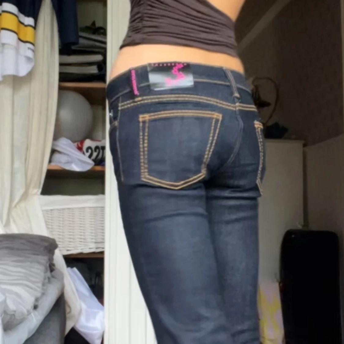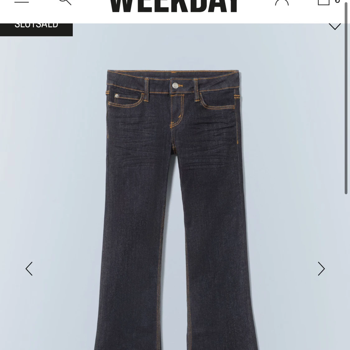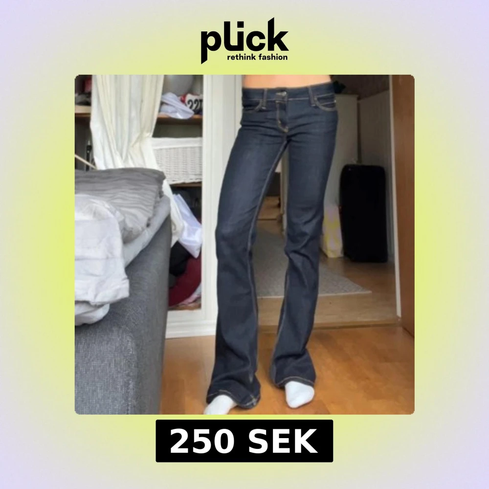 Säljer ett par mörkblå bootcut jeans från Cheap Monday med låg midja och klassiska kontrastsömmar. Jeansen har fem fickor och är tillverkade i stretchig bomullsdenim för en snygg passform. Perfekta för dig som gillar en retro vibe och markerad siluett. Slutsålda!🤗uppsprättade där nere så de är långa på mig som är 173!