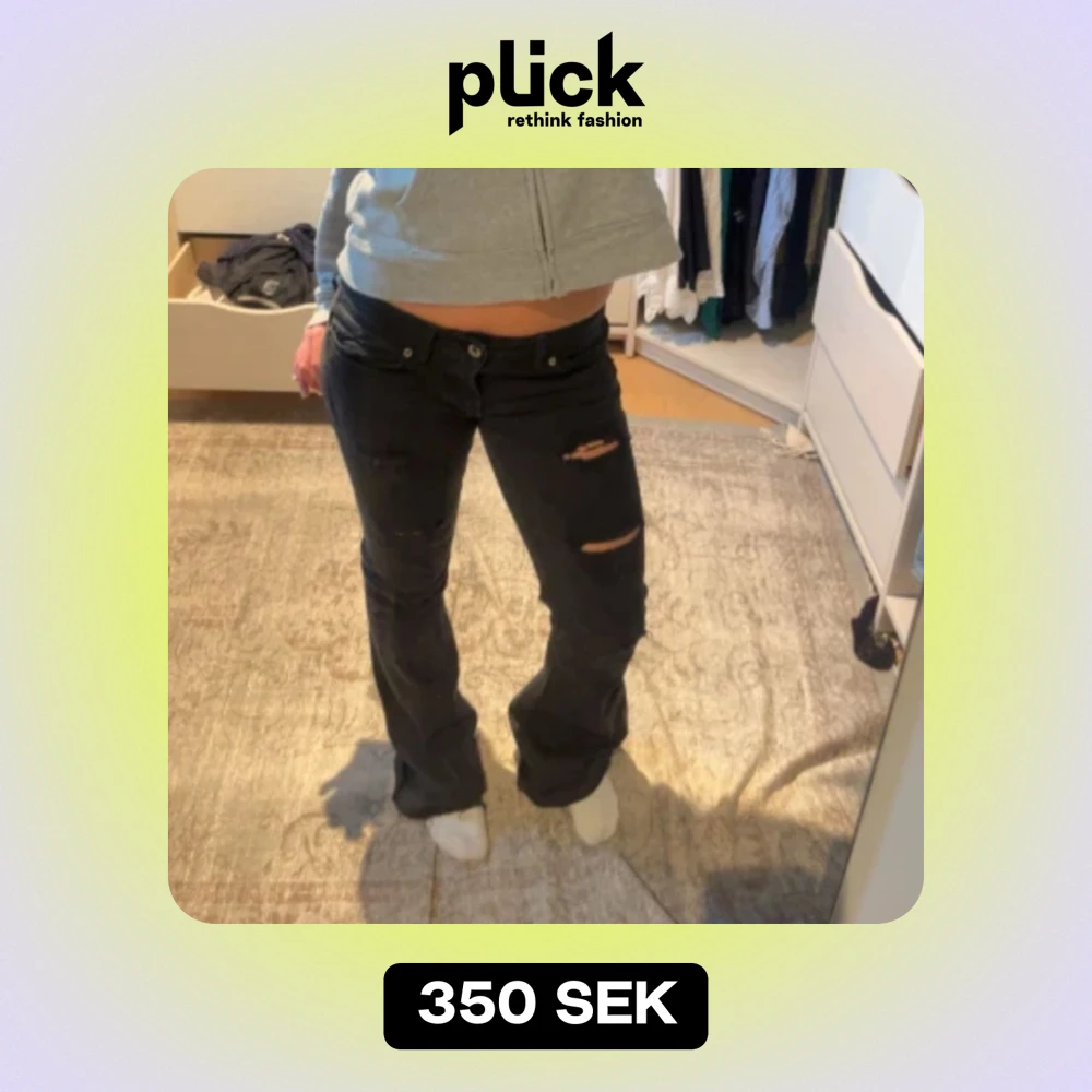Säljer dessa sjukt snygga Lågmidjade jeansen då de tyvärr inte kommer till användning längre. De är i jätte bra skick och har hål både fram och bak💞strlk 27 passar S/Xs