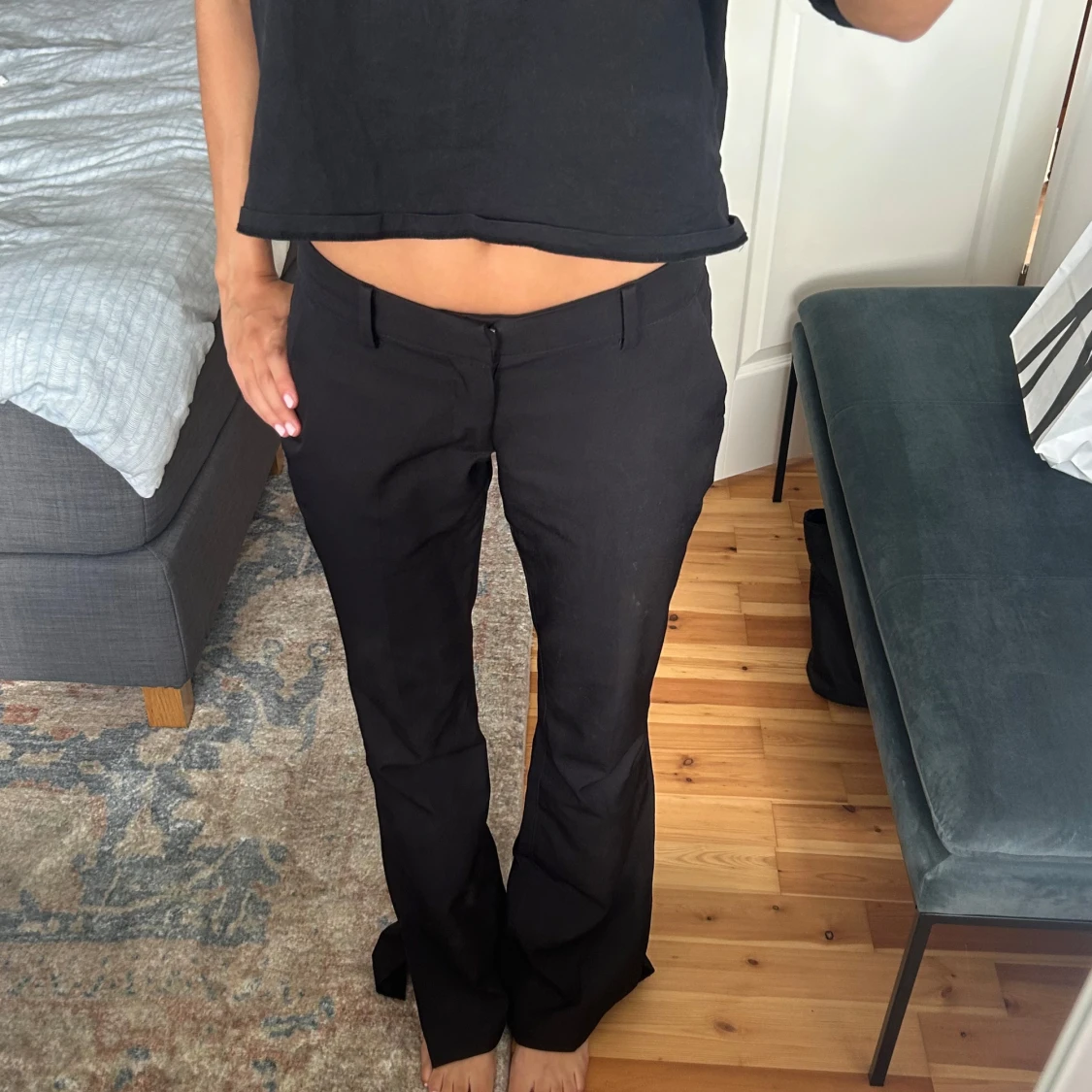 Snygga svarta kostymbyxor med bootcut och slits nertill på benen 🩷Kommer inte till användning längre!