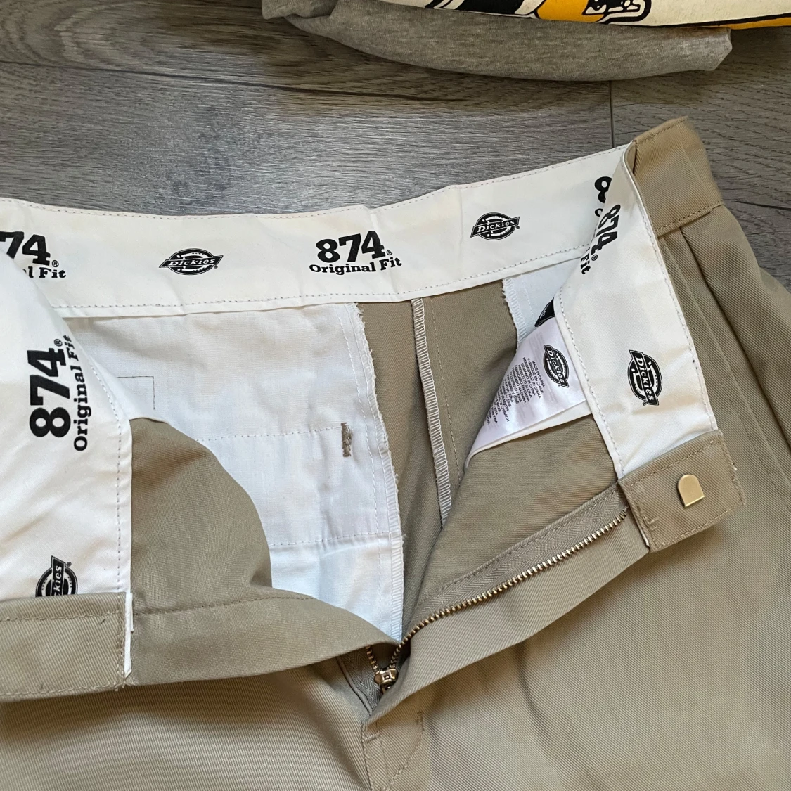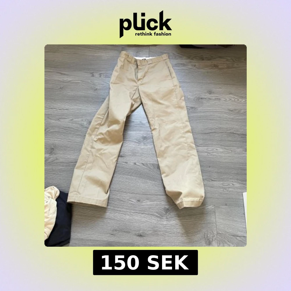Säljer ett par klassiska beige Dickies 874 Original Fit byxor. De har en rak passform och är perfekta för både vardag och arbete. Byxorna är i nyskick bara använda några gånger. Perfekta för höst och vår!