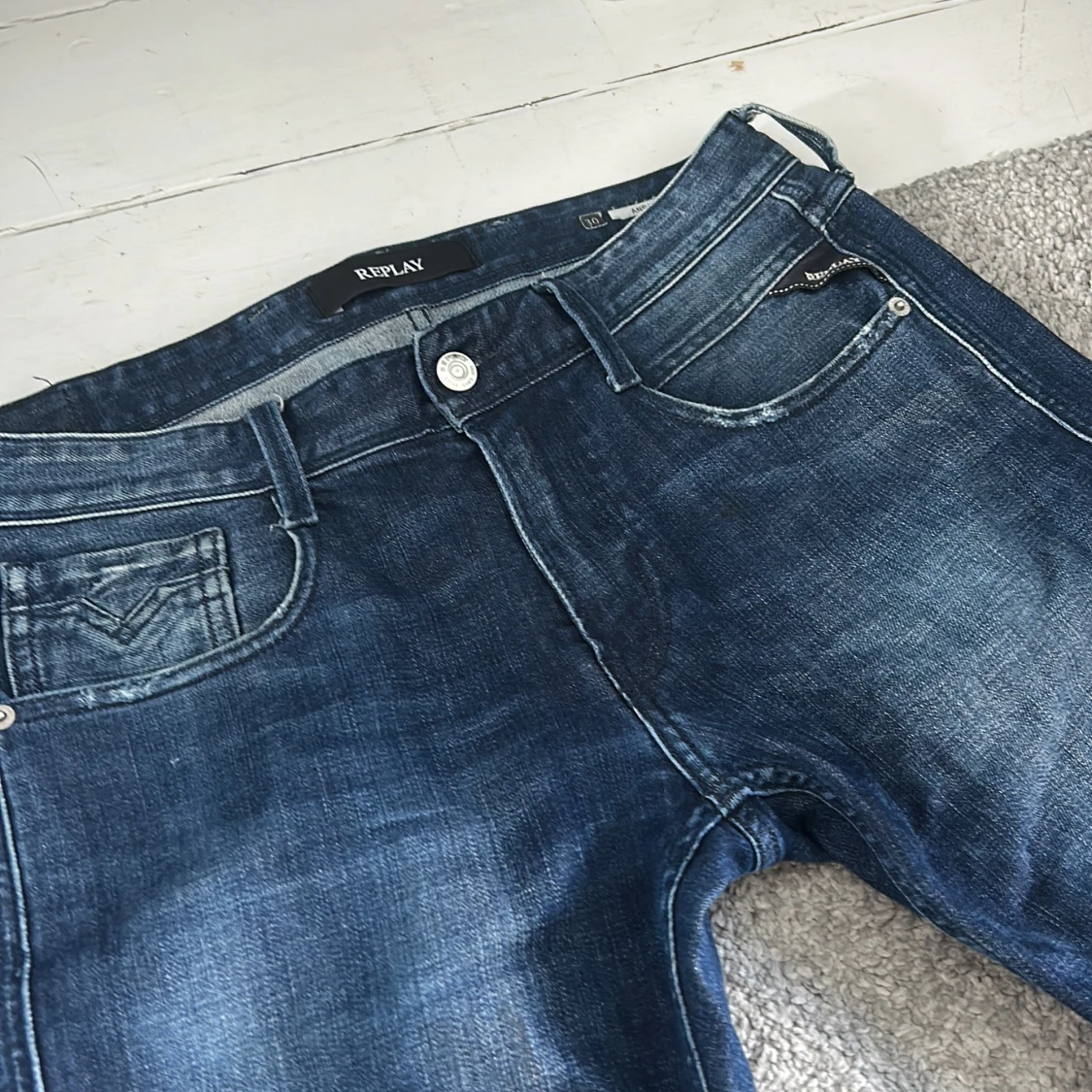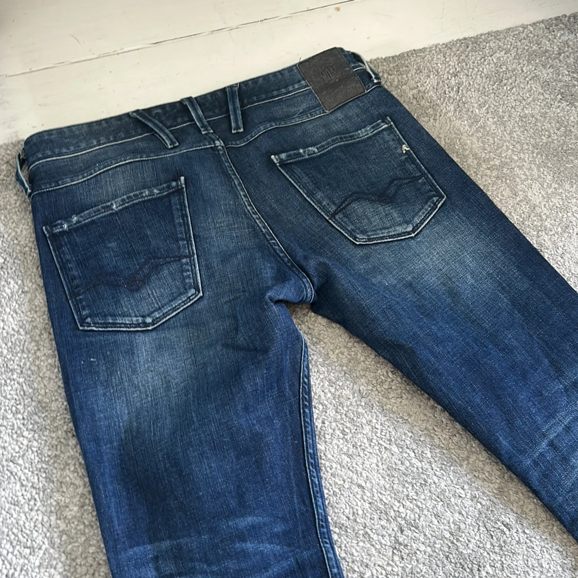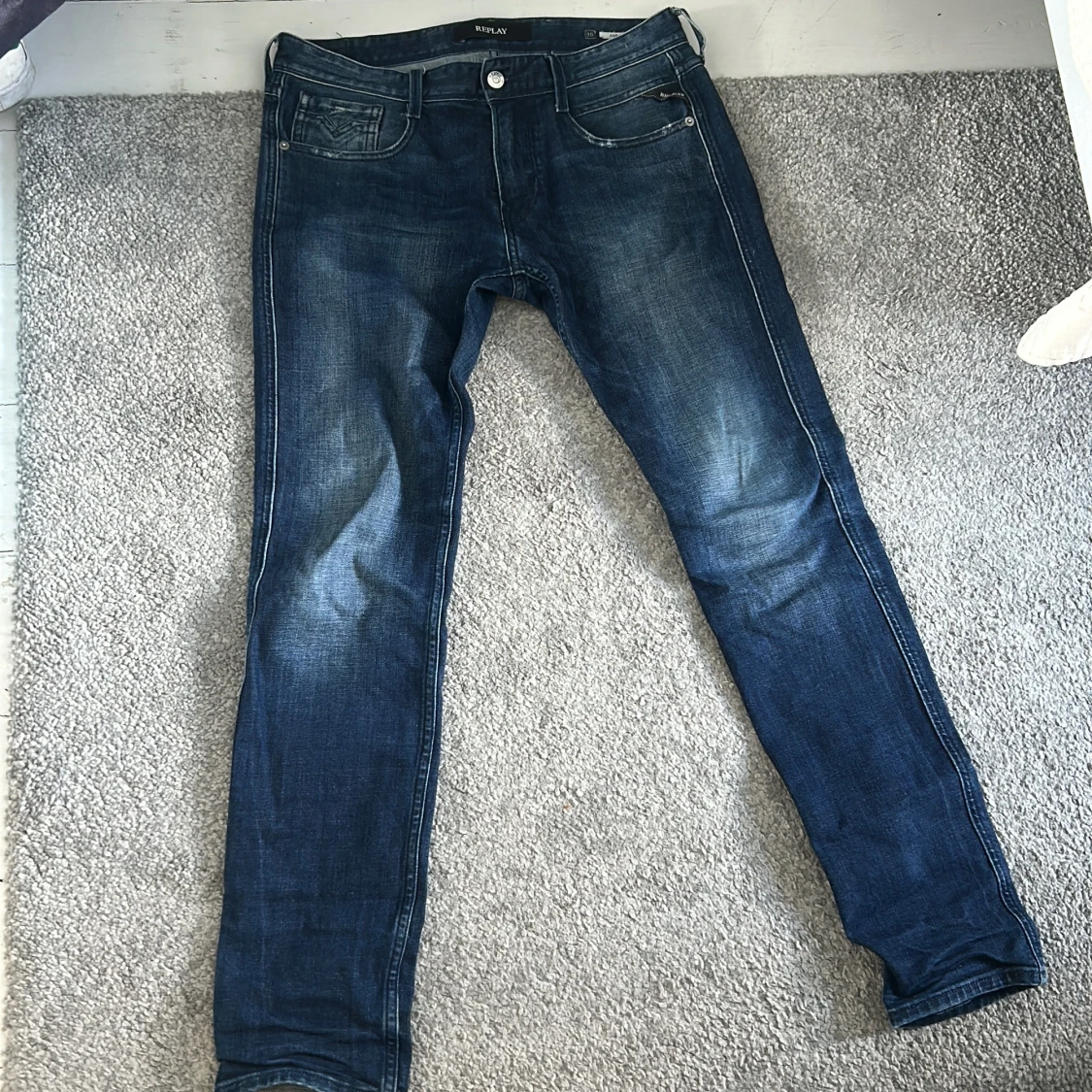 Replay anbass jeans storlek 30w 32 L, i bra skick, lite använda men inga skador, riktigt snygga