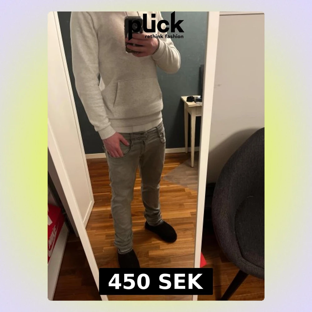 Tja säljer mina gråa replay Anbass jeans i storlek 32. Väldigt bra skick inga fläckar eller liknande. Jag är 180 och väger ca 80 kg. Passar både lite större och lite mindre en mig skulle jag tro. (Med tanke på materialet) pruta på inget fast pris här. Hör av er vid minsta fundering över jeansen// Eskil.