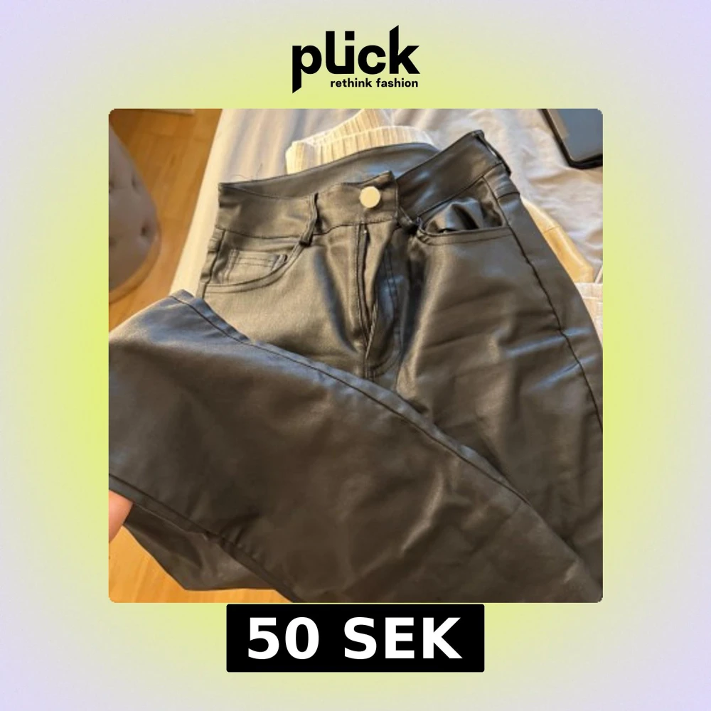 Snygga svarta byxor i skinnimitation med klassisk femficksdesign och hög midja. Byxorna har raka ben och stängs med dragkedja och knapp. Perfekta för dig som vill ha en edgy look och gillar trendiga material.