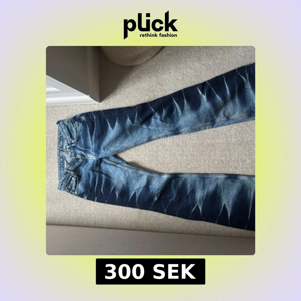 Säljer ett par blå jeans med riktigt cool tvätt och ljusa slitningar längs benen. Klassisk femficksmodell och bootcut passform. Jeansen har en snygg faded effekt som sticker ut och ger en trendig vibe. Använt typ 2 gånger