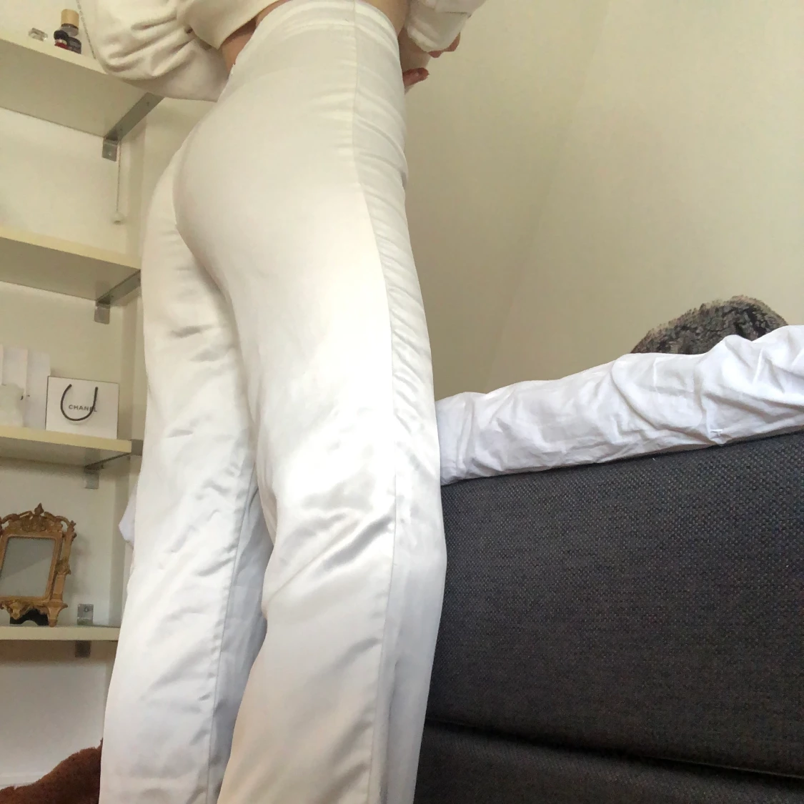 Säljer mina otroligt fina välanvända satin byxor då jag ej använder de längre. Så sjukt snygga och passar till allt. Tror jag köpte de för 800 men då de är välanvända därav priset. Har exakt samma i både svart och vitt så om ni vill ha fler bilder på ex de svarta är det bara att säga till! De är storlek xs men jag är s och de passar mig perfekt❤️