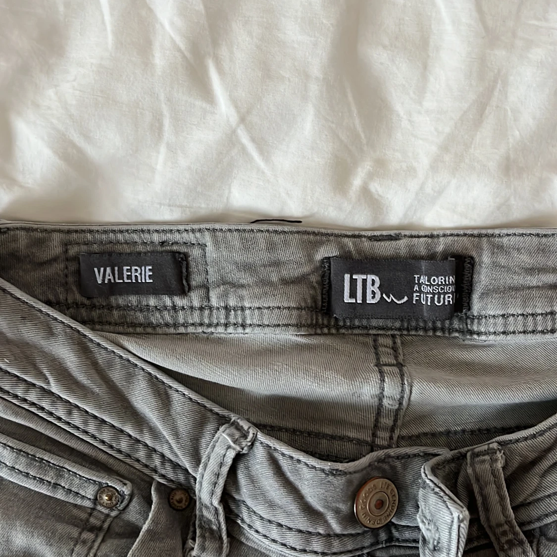 Snygga grå jeans från LTB i modellen Valerie. De har låg midja och bootcut-ben. De har använts mycket, lite urtvättade, men inga defekter så som hål eller liknande. Nypris 799