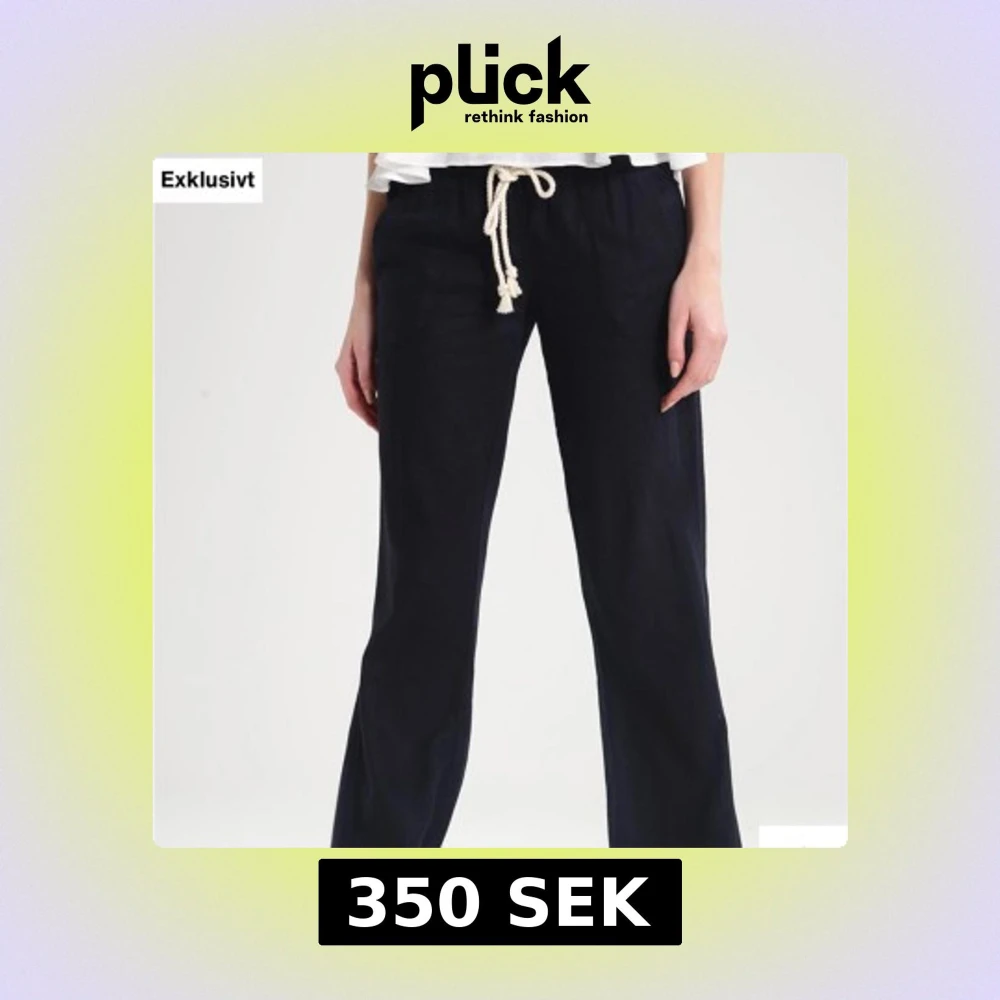 Snygga svarta linnebyxor med avslappnad passform och vit snörning i midjan. Byxorna har raka ben och elastisk midja för extra komfort. Perfekta för en chill och stilren look.
