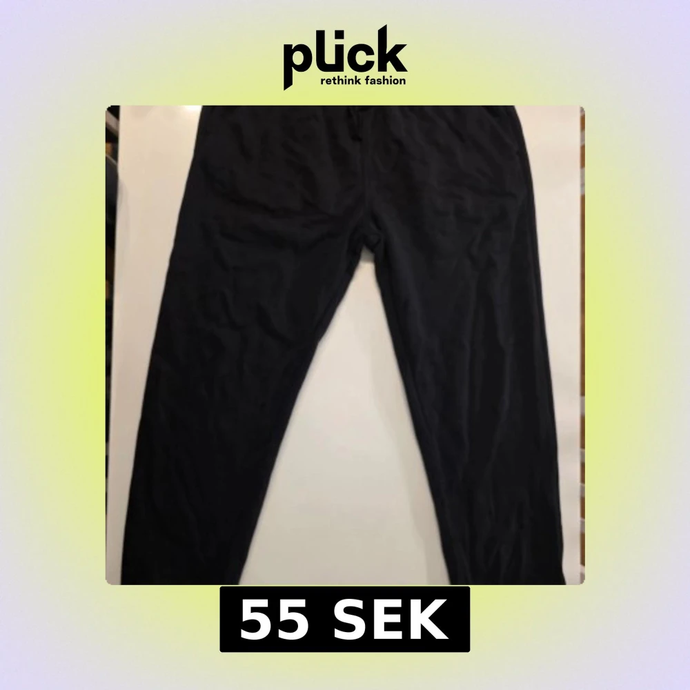 Svarta mjukisbyxor från H&M i regular fit, storlek L. Byxorna har resår i midjan och är tillverkade i en mjuk blandning av bomull och polyester. Perfekta för chill dagar eller när du vill ha det extra bekvämt. Jättesköna de som har provat H&Ms byxor vet det