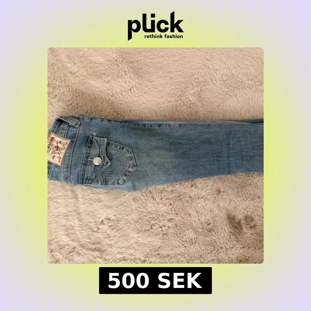 Snygga ljusblå jeans från True Religion, modell Joey Low Rise Flare. Klassisk femficksdesign med markerade sömmar och ikonisk bakficka med lock och knapp. Jeansen har låg midja och utsvängda ben för en cool retrostil. Perfekta för dig som gillar statement-jeans.