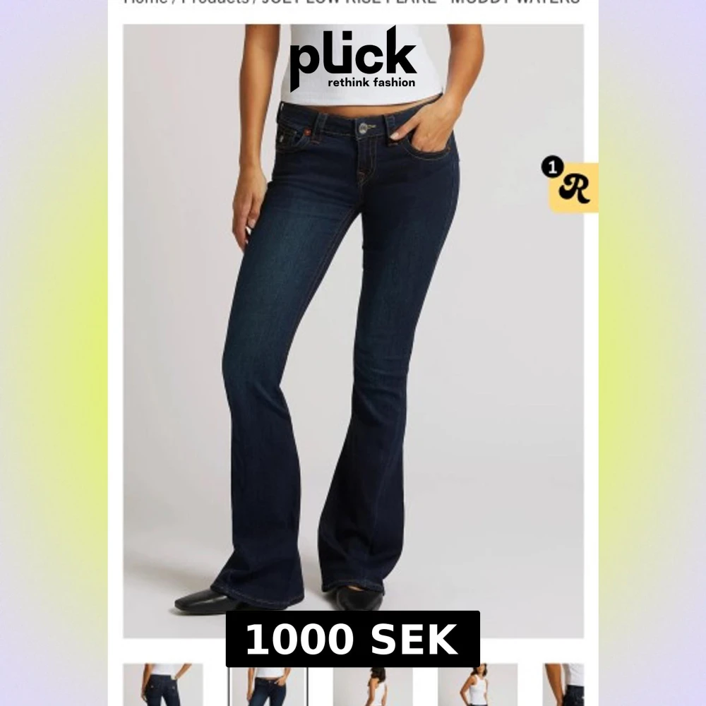 Snygga mörkblå jeans från True Religion med låg midja och bootcut flare. Klassiska femficksmodellen med dekorativa sömmar och silverfärgade knappar på bakfickorna. Tjockt jeansmaterial med kontraststickningar och ikonisk logopatch bak. Helt nya med prislapp och pris går att diskutera