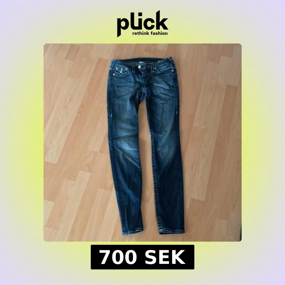 Snygga blå jeans från True Religion med skinny passform. De har en klassisk femficksdesign och dekorativa sömmar på bakfickorna. Perfekta för en stilren look. Säljer dessa då de är för små för mig. Använt 1 gång.