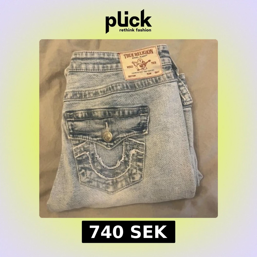 Säljer ett par True Religion Joey jeans i ljusblå tvätt med låg midja och flare-ben. Klassisk femficksmodell med snygga detaljer på bakfickan och silverfärgad knapp framtill. Materialet är jeans och passformen är loose med bootcut-stil. Passar mig som har M 🌸
