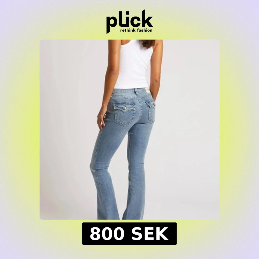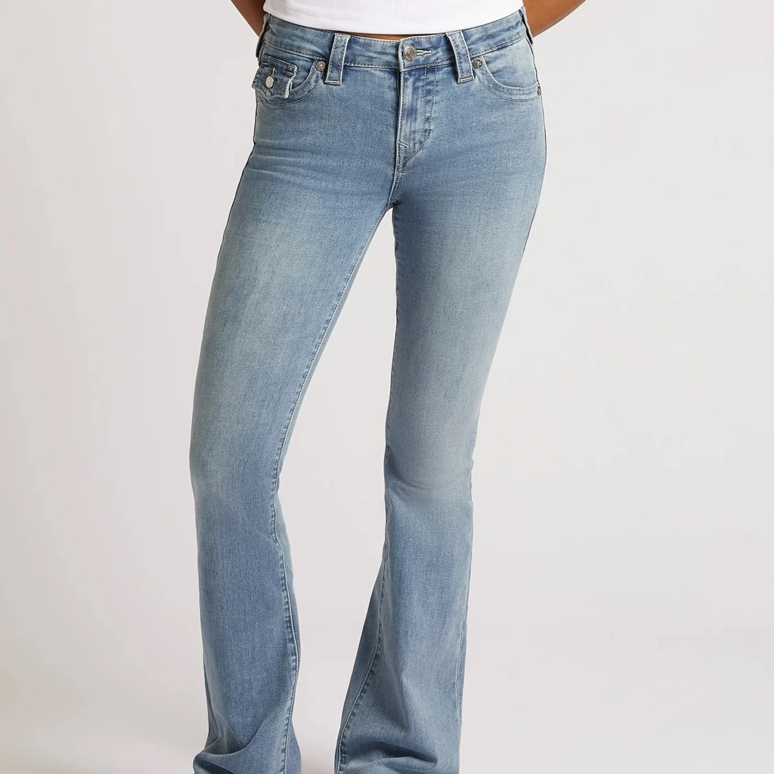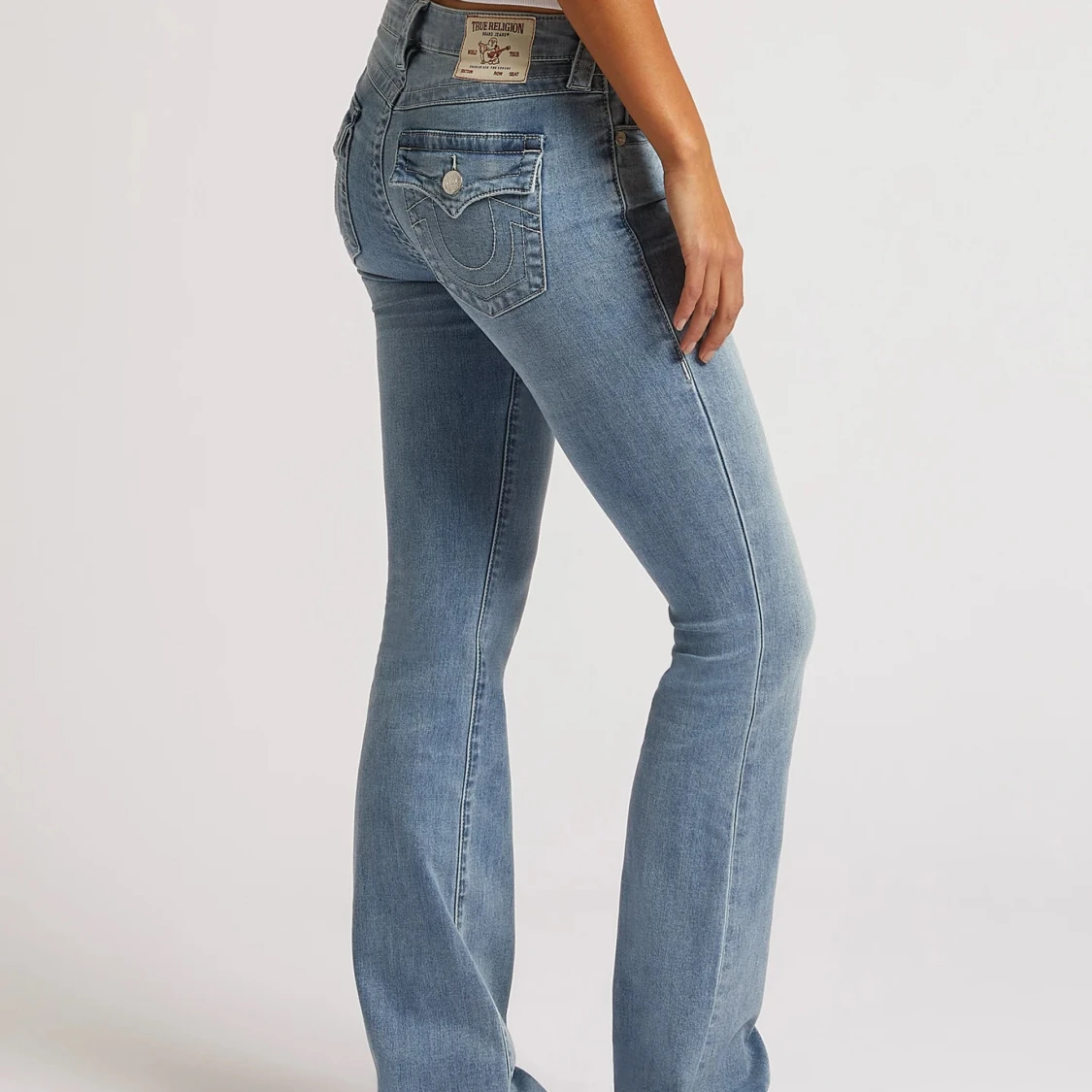 Snygga ljusblå jeans från True Religion med bootcut passform. Jeansen har klassiska fem fickor, dekorativa sömmar och lock på bakfickorna med silverfärgade knappar. Tillverkade i stretchig denim för en bekväm känsla.