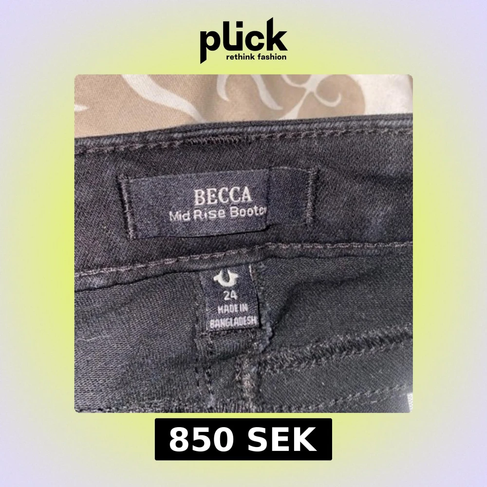 Säljer ett par svarta bootcut jeans från true religon i modellen Mid Rise Booter, storlek 24. Jeansen har medelhög midja och klassisk femficksdesign. Perfekta för dig som gillar en tidlös och snygg look.