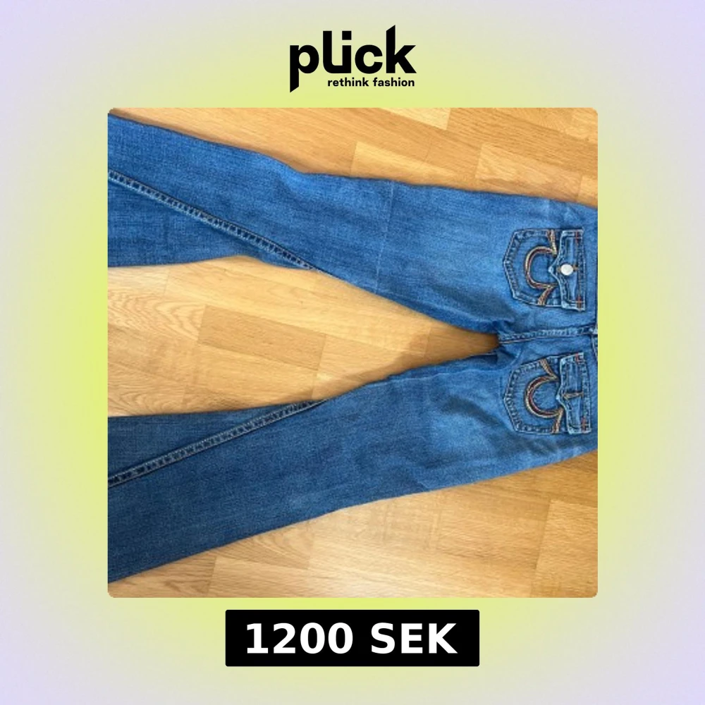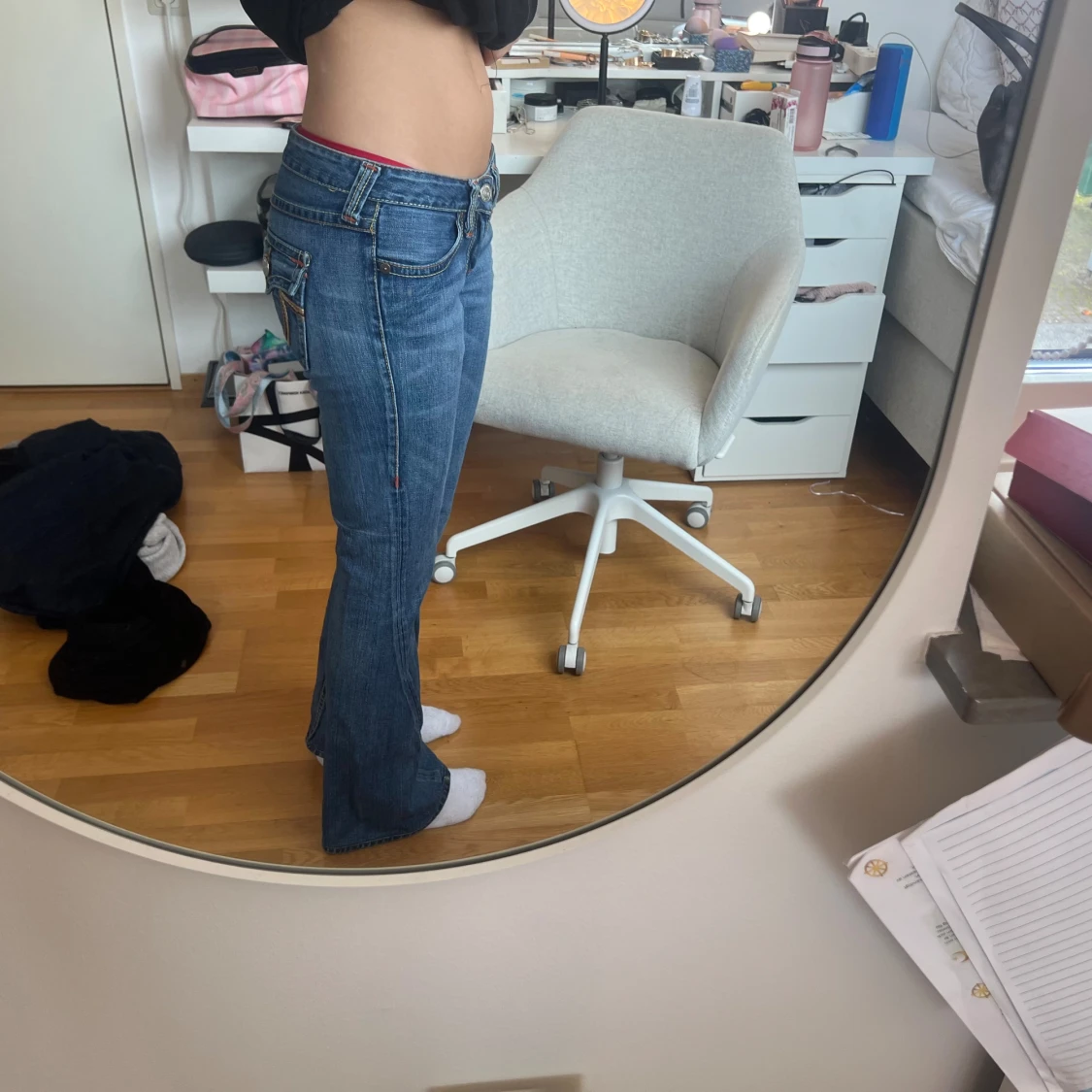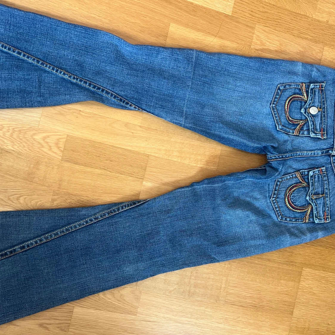 Vintage Low waist bootcut true religion jeans med brodering på bakfickan. Jag är 170 och brukar ha storlek 36/S