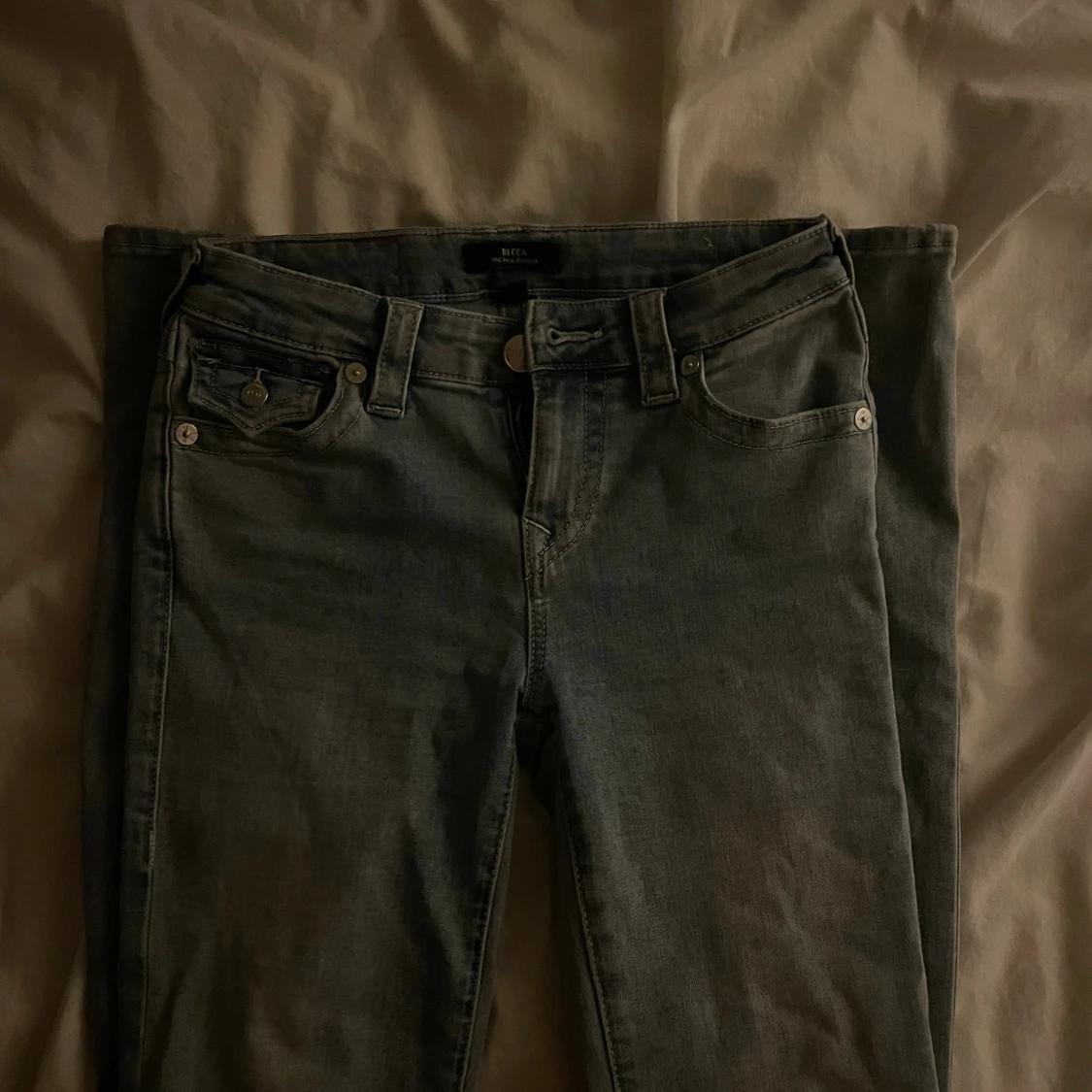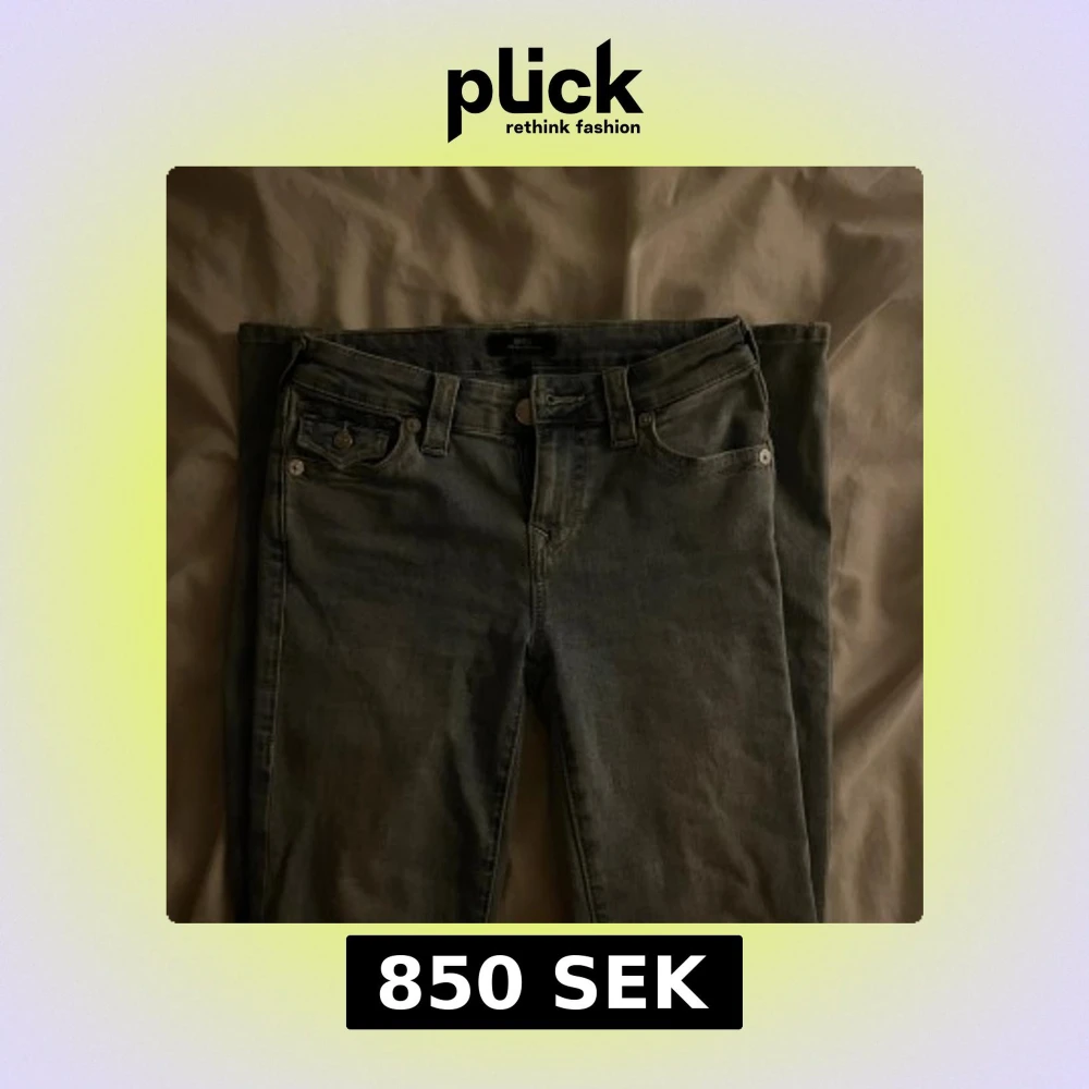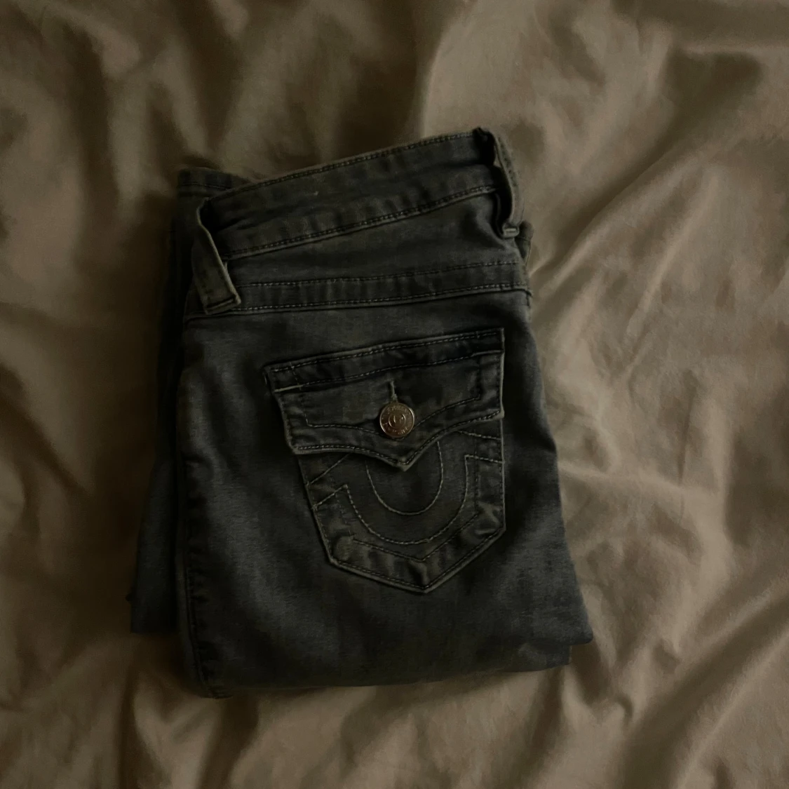 Säljer ett par ljus blåa true religion jeans i W25. Dem är använda ungefär 2 gånger och är då i mycket bra skick. Dem är bootcut och midrise, men för mig är dem som low waist💕