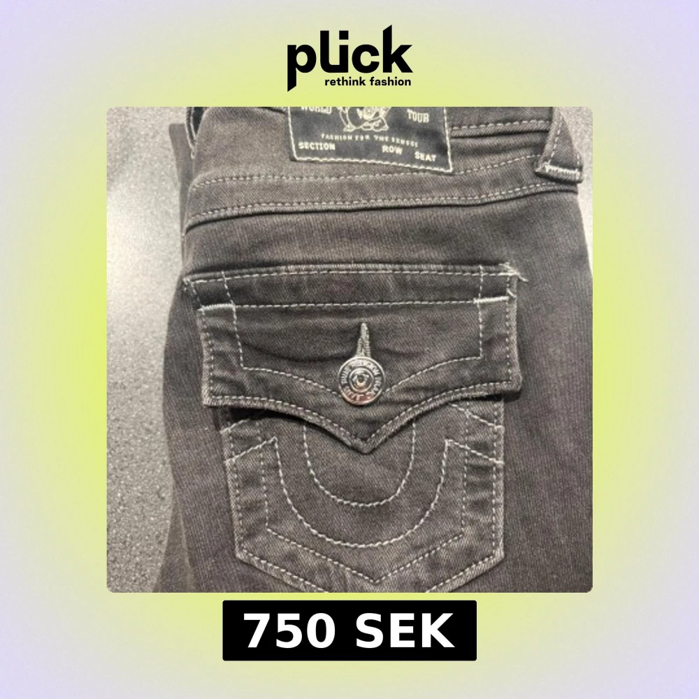 Snygga svarta True Religion Becca jeans med bootcut och coola kontrastsömmar. Klassisk fickdesign med lock och silverfärgad knapp. Midwaist passform och tillverkade i mjukt jeanstyg. Perfekta för dig som gillar streetstyle och vill sticka ut. Knappt använda!! Snabb affär sänker jag priset!!