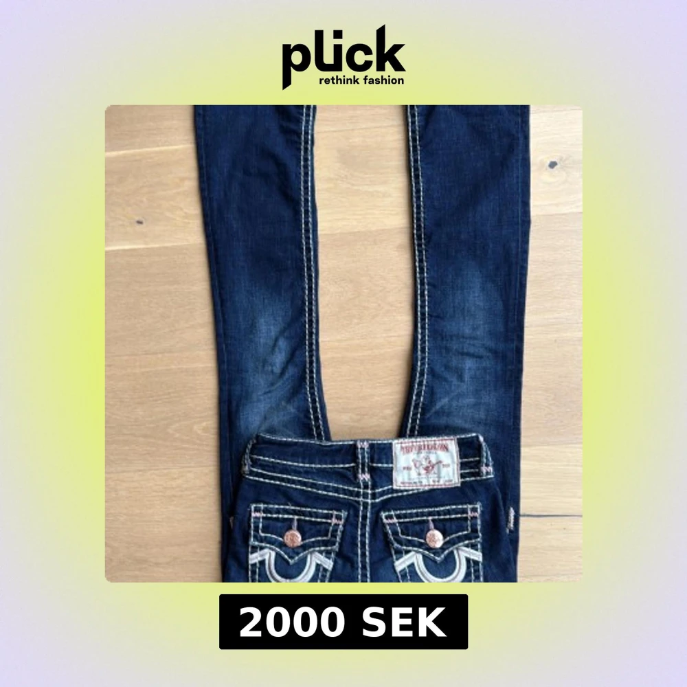 Mörkblå limited edition jeans från True Religion, modell Becca med bootcut. Snygga kontrastsömmar i vitt och rosa, klassiska fickor med dekorativa detaljer och kopparfärgade knappar. Midwaist/lowwaist. Ny pris 2700 men säljer för 2000 så dom är limited edition och knappt använda.