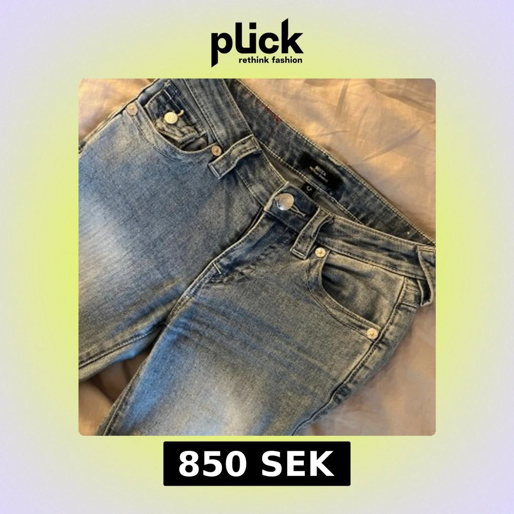 Ljusblå jeans från True Religion, modell Becca Mid Rise Bootcut. Klassisk femficksdesign med snygga detaljer och logga på bakfickan. Jeansen har bootcut-snitt och är tillverkade i mjukt denimtyg för en skön passform. Använd några gånger och lite slitna vid hälarna men annars jättebra skick, en av bakfickorna har knappen ramlat av på också, pris går att diskutera💕