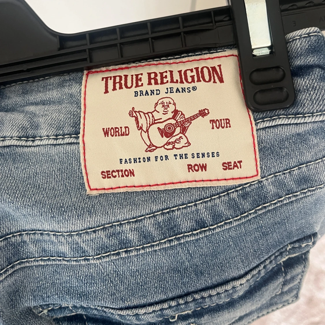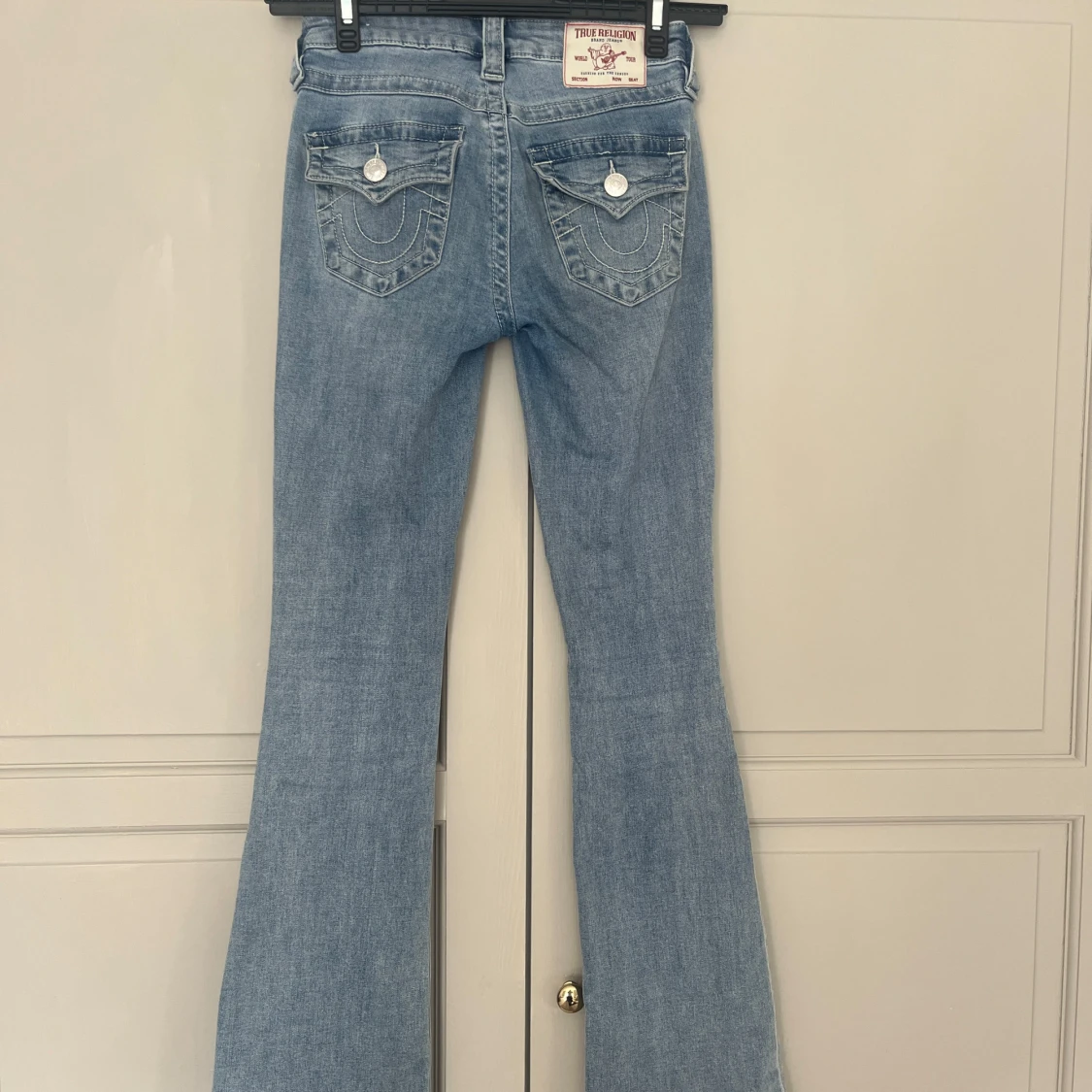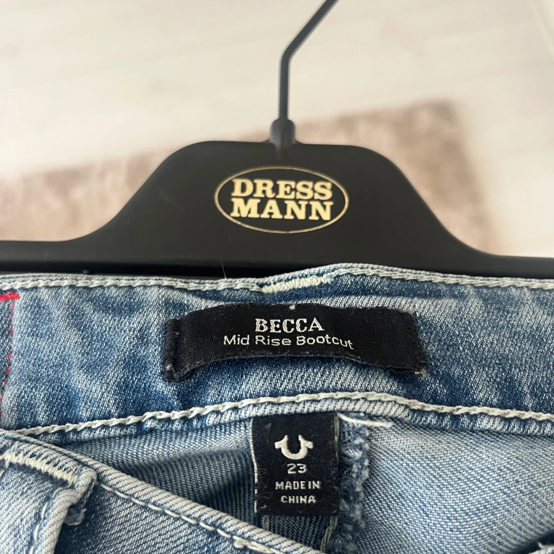 Ljusblå bootcut jeans från True Religion, modell Becca Mid Rise Bootcut. Klassisk femficksdesign med snygga detaljerade bakfickor och silverfärgade knappar. Jeansen är i mjuk denim och har en lätt tvättad look för en avslappnad vibe.